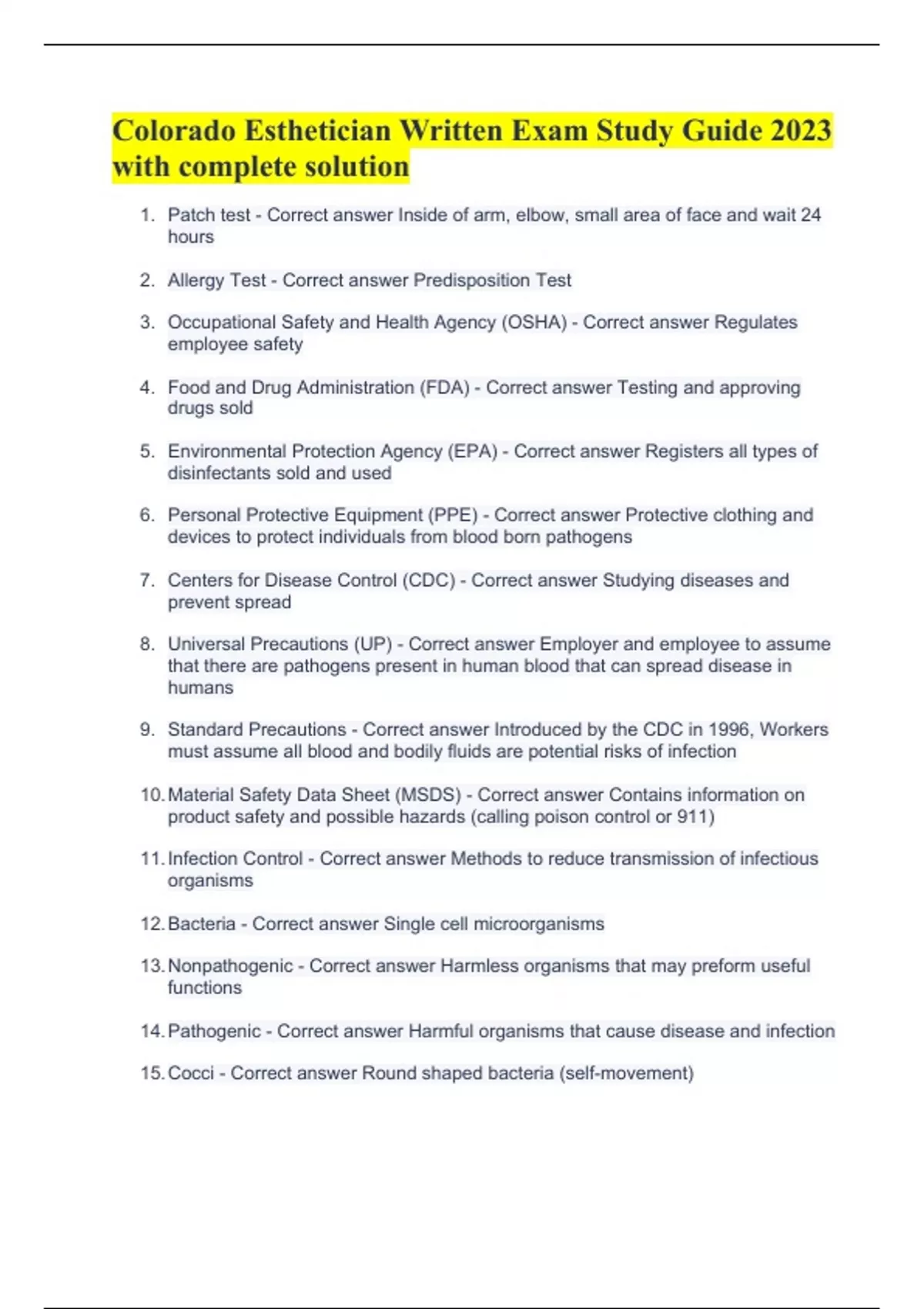Colorado Esthetician Written Exam Study Guide 2023 with complete solution