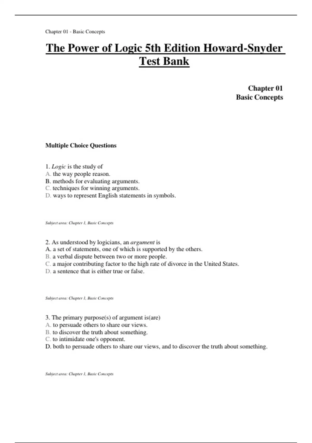 The Power of Logic 5th Edition Howard-Snyder Test Bank Test Bank for The Power of Logic 5th Edition Howard-Snyder / All Chapters 1 - 10 / Full Complete 2023