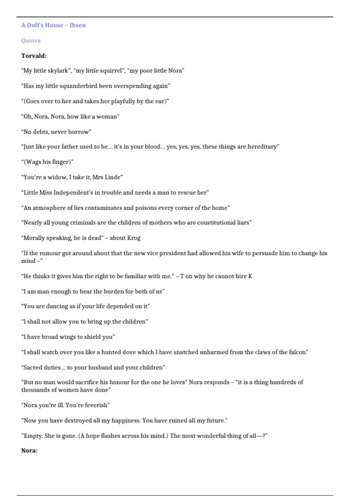 A-Level OCR English Literature A Doll's House. Includes quotations and context. Also includes criticism