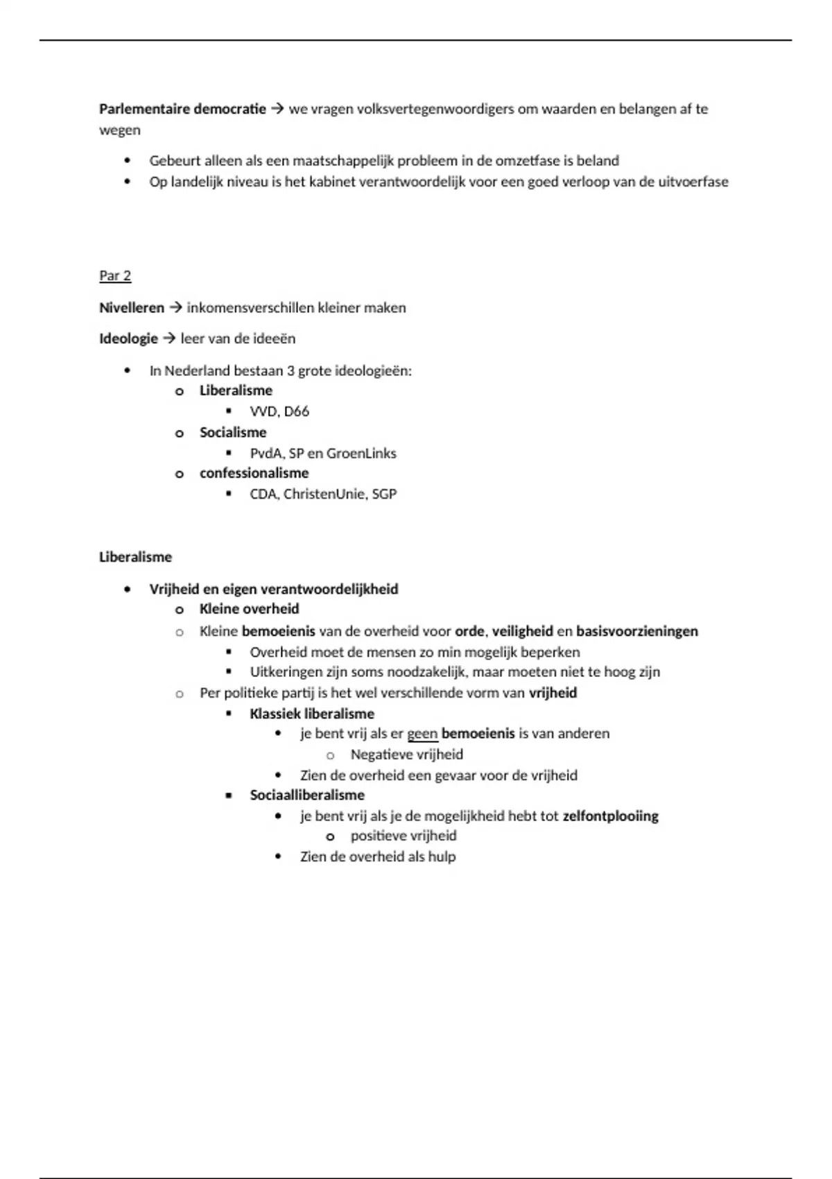 o Per politieke partij is het wel verschillende vorm van vrijheid