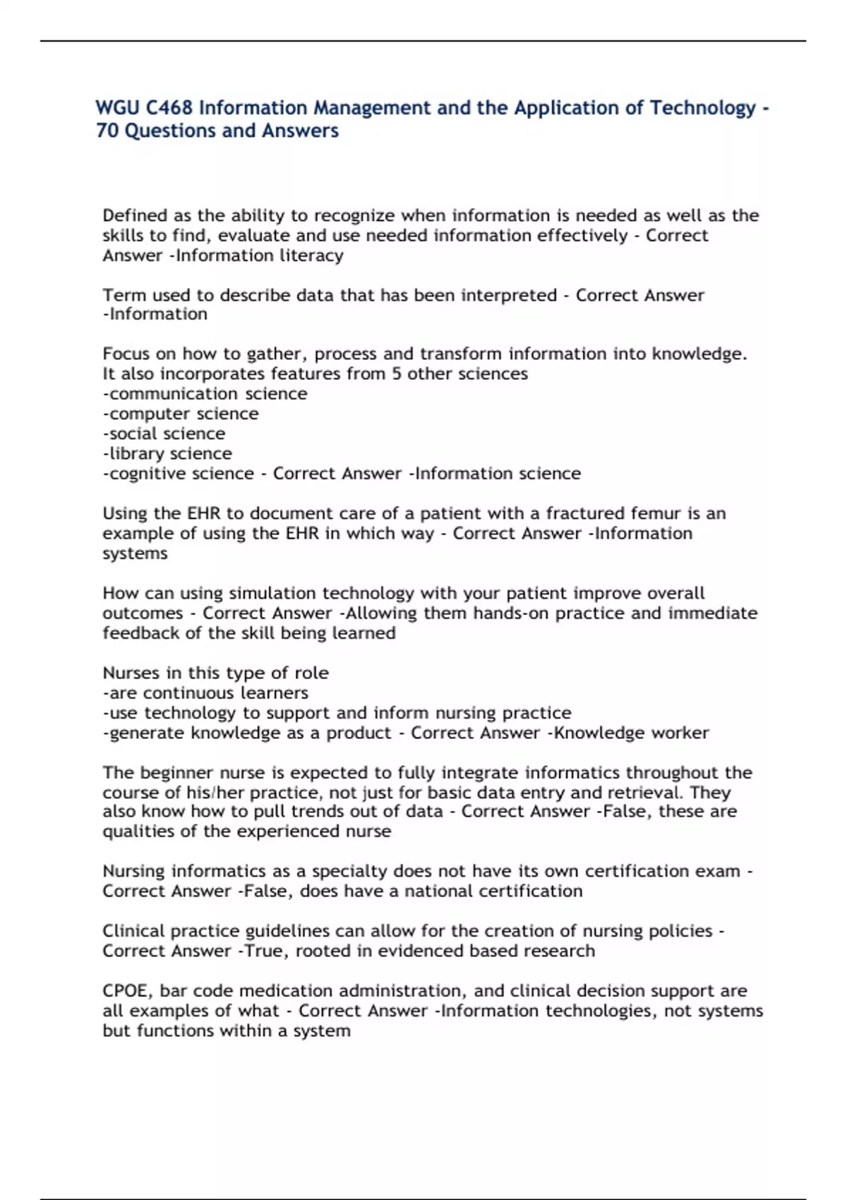 WGU C468 Information Management and the Application of Technology -70 Questions and Answers
