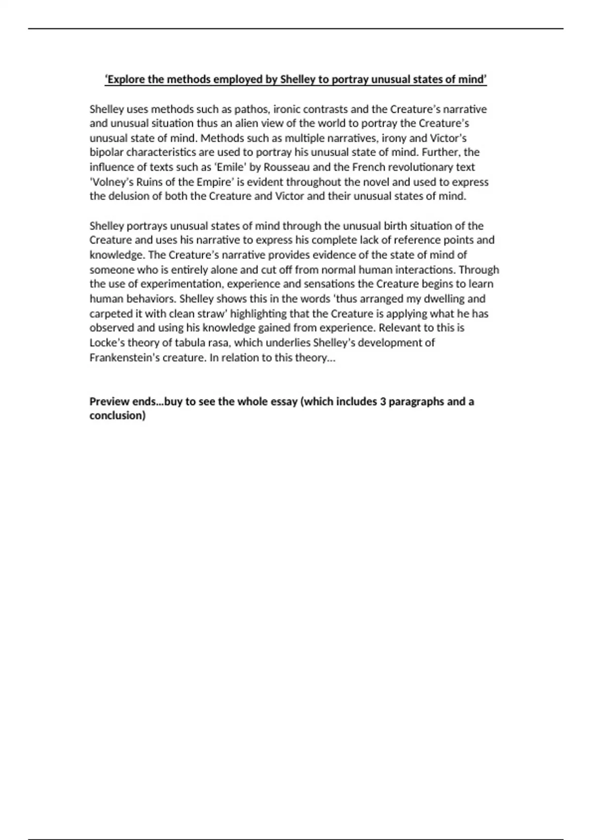 Locke’s theory of tabula rasa, which underlies Shelley’s development of
