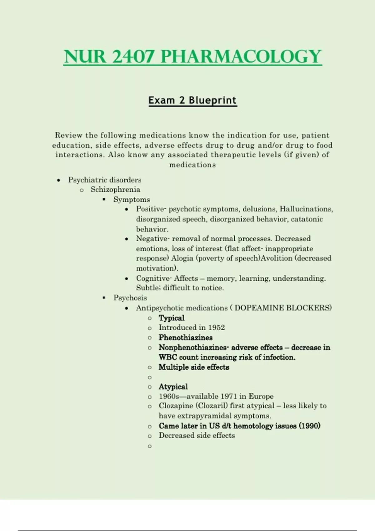 NUR2407 / NUR 2407 Pharmacology Exam 2 Blueprint - Rasmussen University