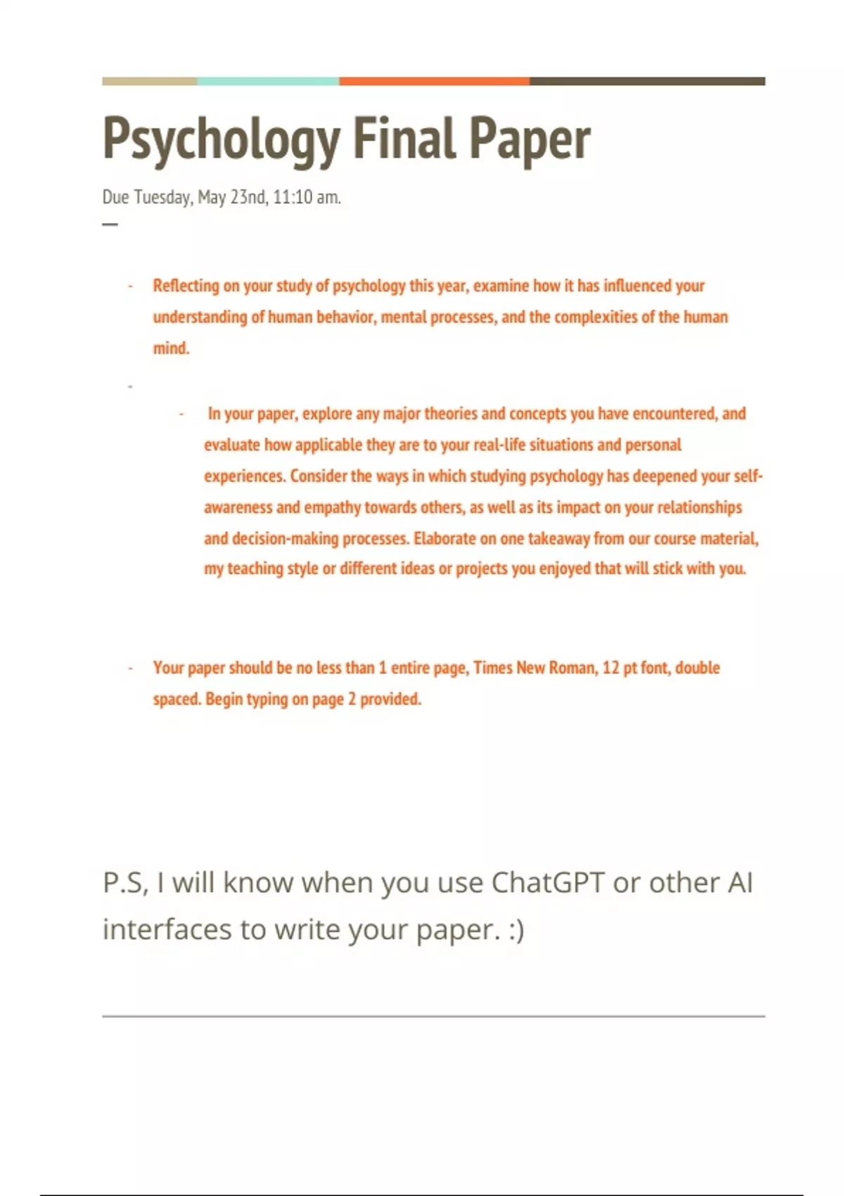 This is a psychology paper and it can be used for your final exam to summarize what you have learned throughout the year.