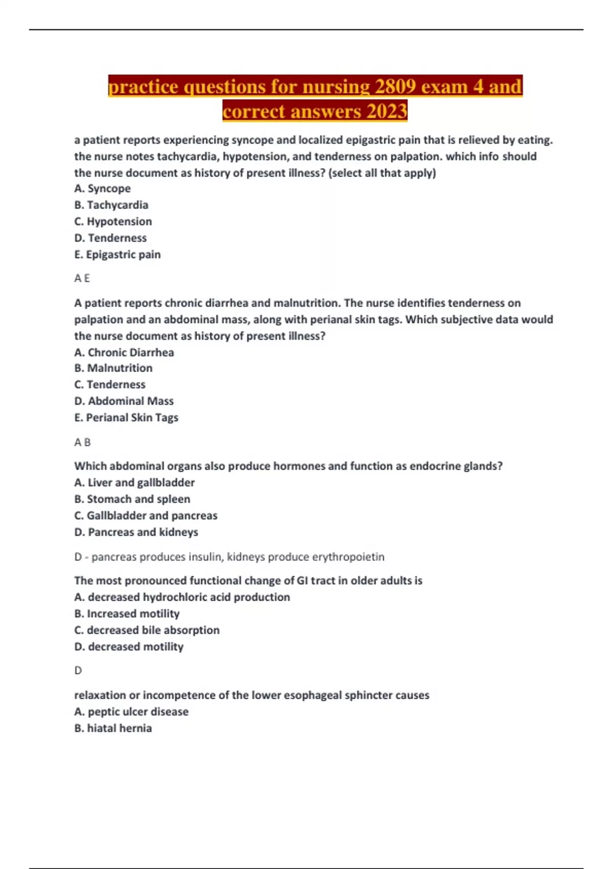 practice questions for nursing 2809 exam 4 and correct answers 2023.