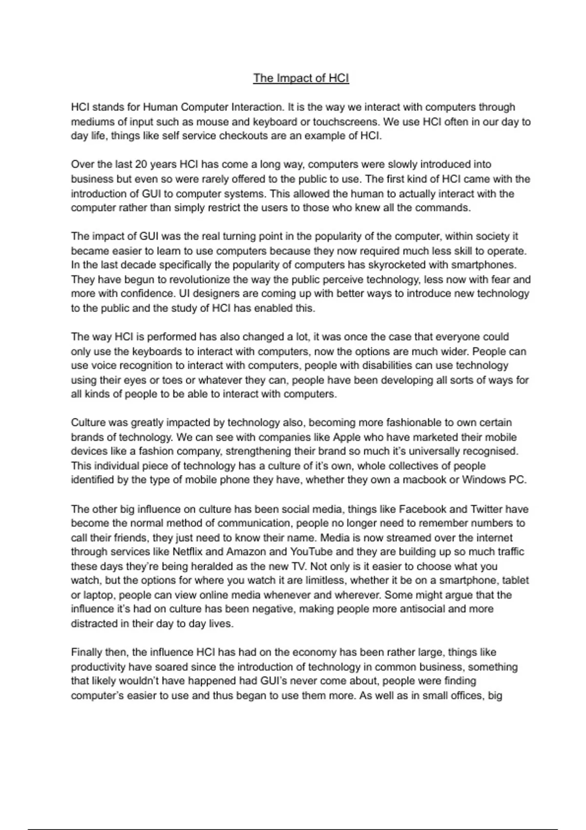 Essay Unit 10 - Human-computer Interaction - Impact of HCI