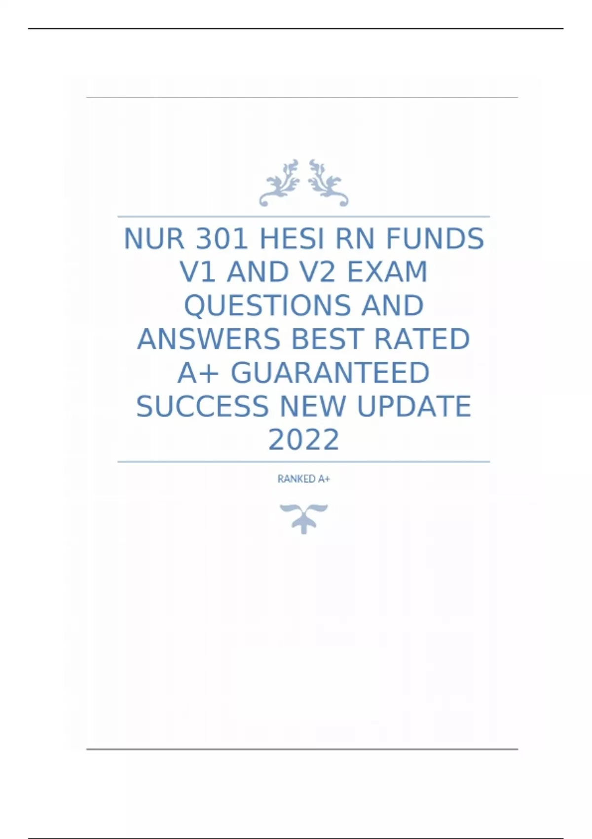 NUR 301 HESI RN FUNDS V1 AND V2 EXAM QUESTIONS AND ANSWERS BEST RATED A+