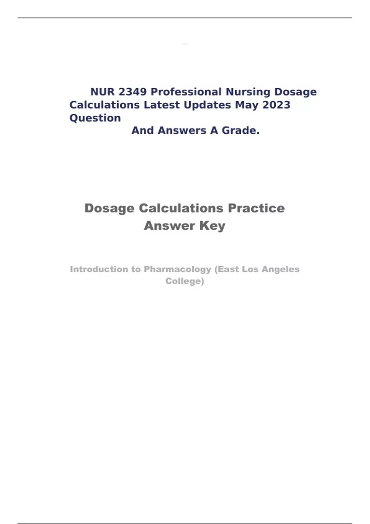 NUR 2349 Professional Nursing Dosage Calculations Latest Updates May 2023 Question And Answers A Grade.