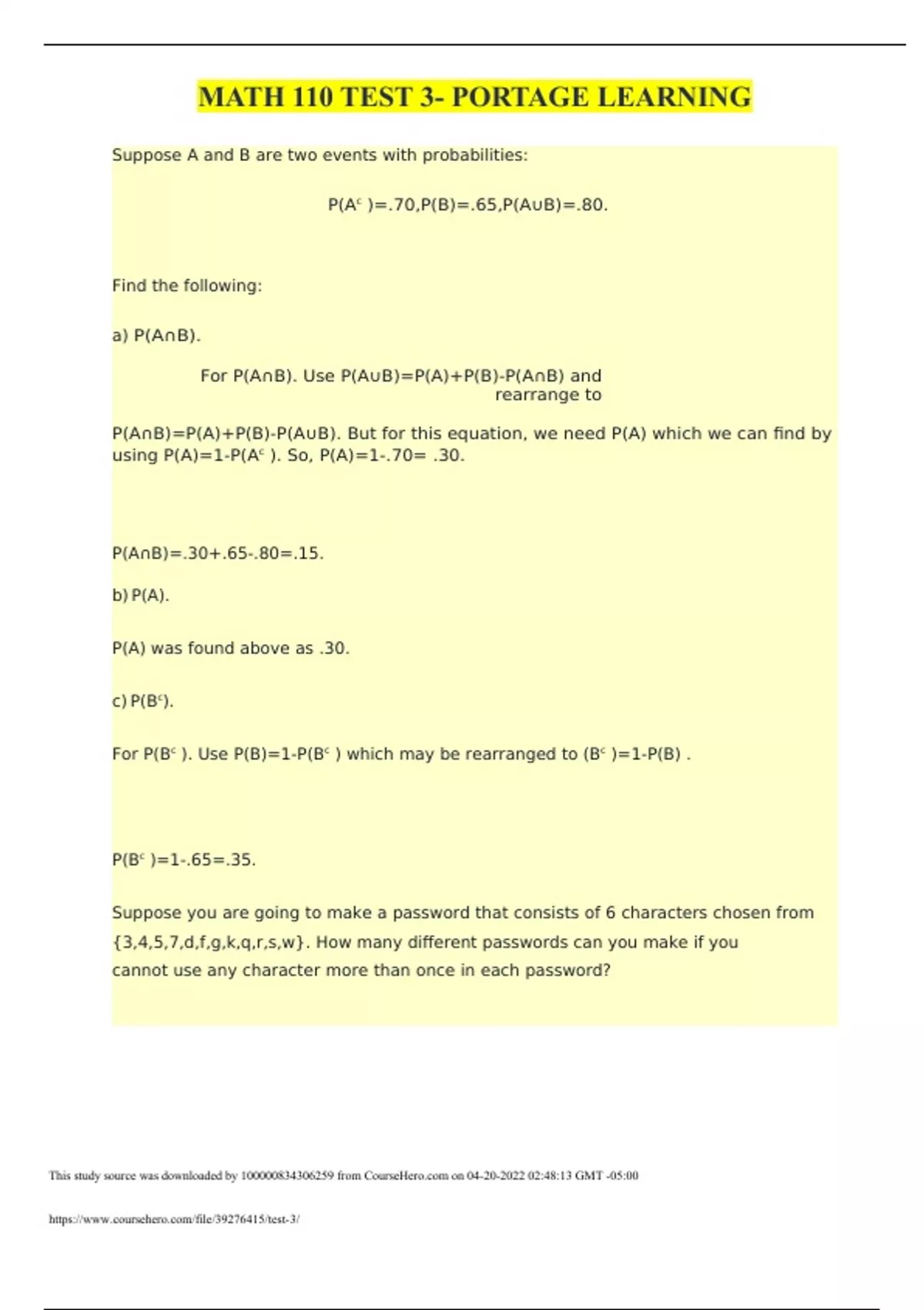 math 110 test 3 portage learning
