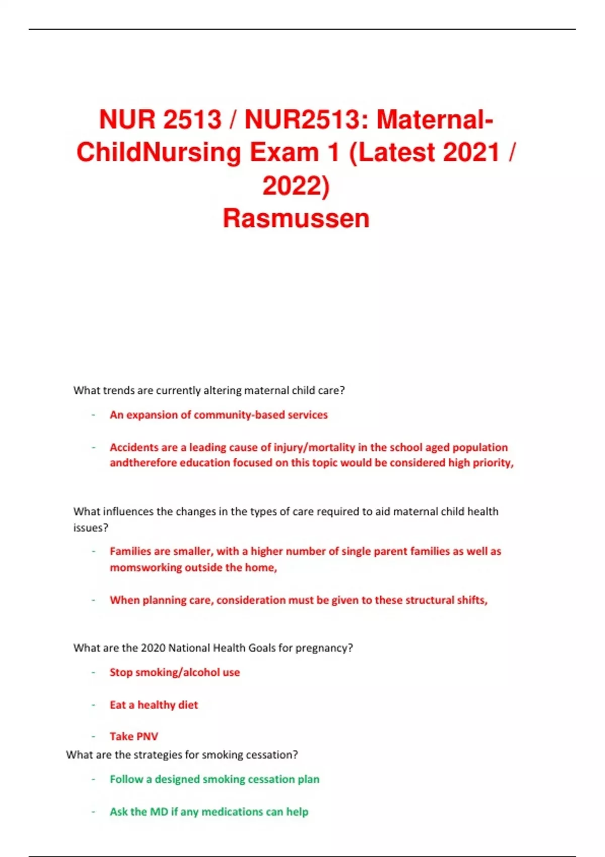 Maternal child study guide 2023