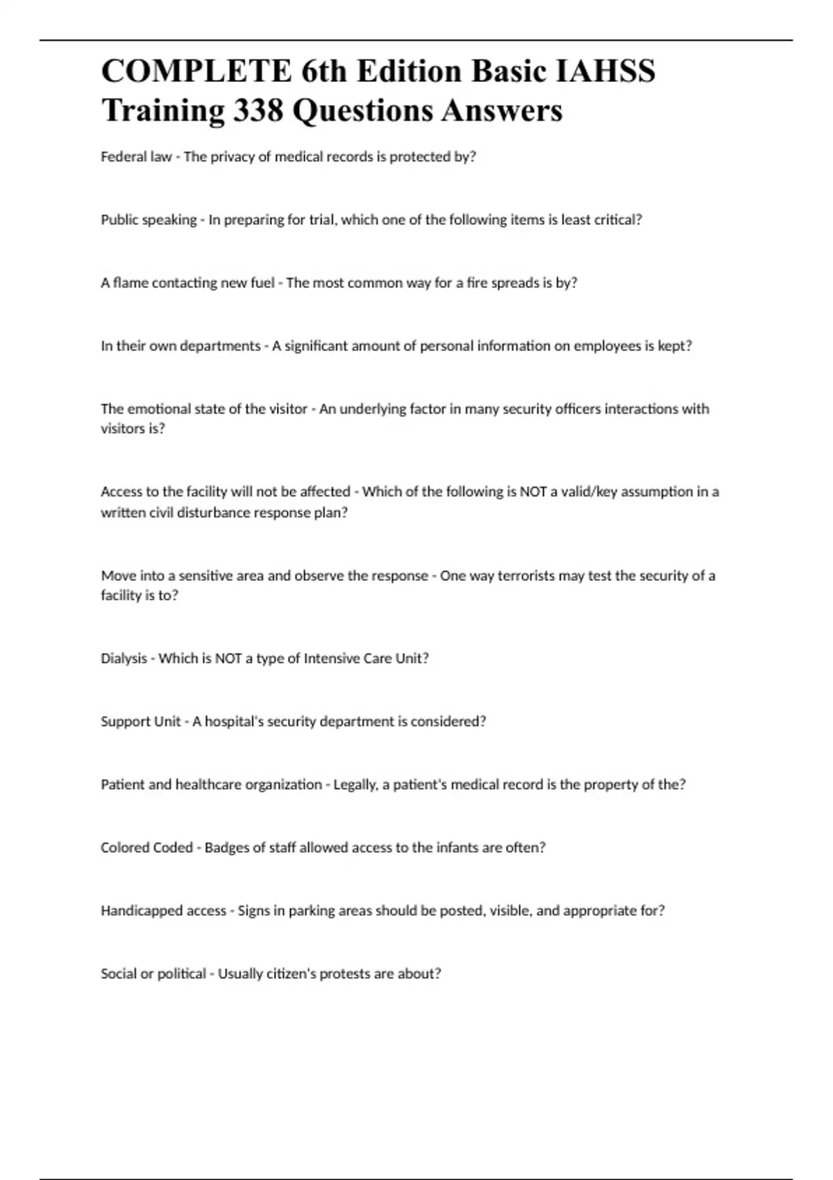 COMPLETE 6th Edition Basic IAHSS Training 338 Questions Answers