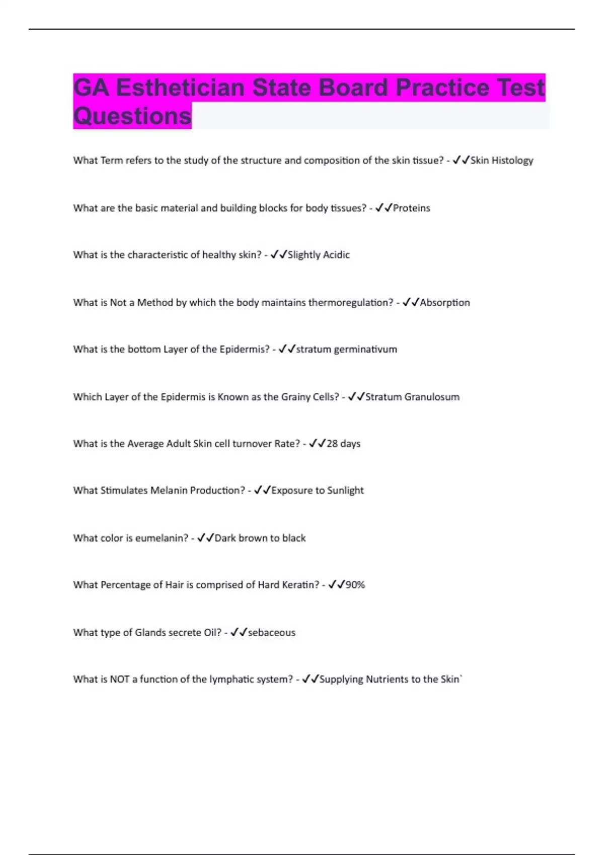 GA Esthetician State Board Practice Test Questions| Questions With 100% Correct Answers | Verified