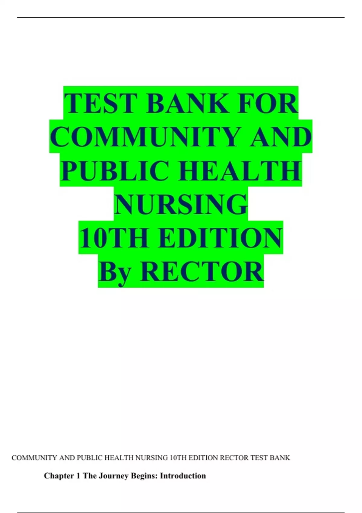 TEST BANK FOR COMMUNITY AND PUBLIC HEALTH NURSING 10TH EDITION By RECTOR