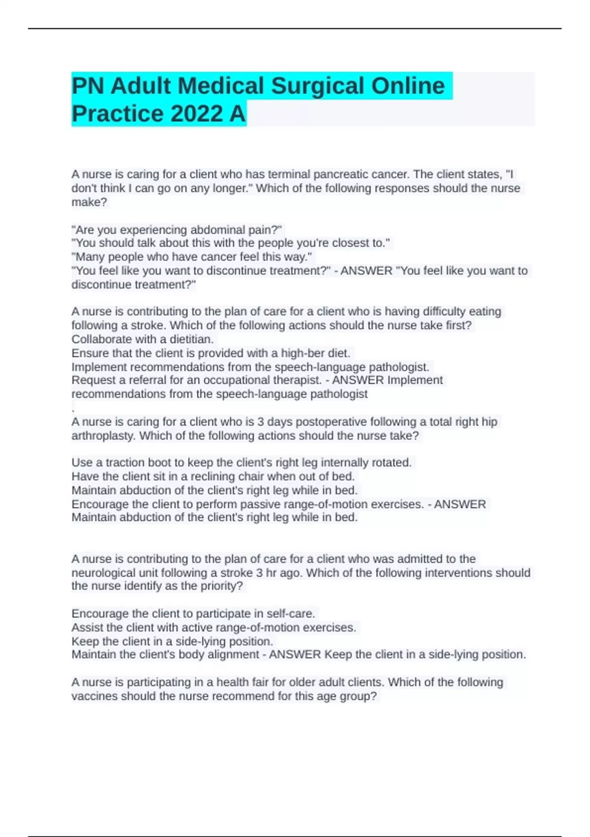 PN Adult Medical Surgical Online Practice 2023 A.