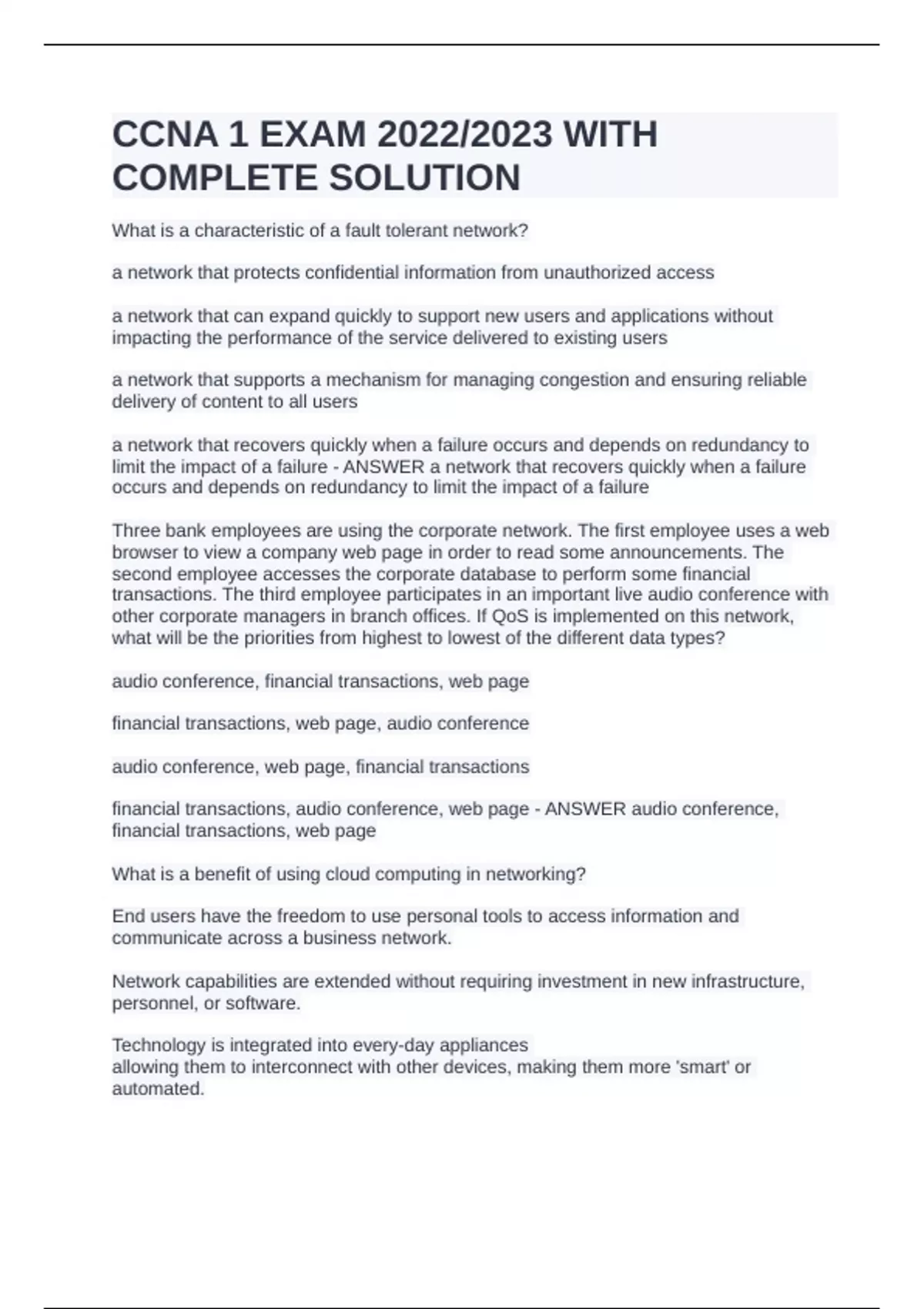 CCNA 1 EXAM 2023 WITH COMPLETE SOLUTION.