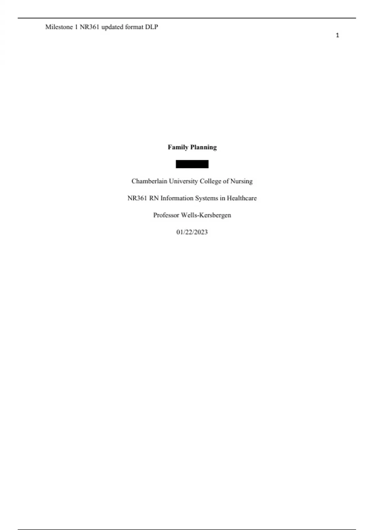 NR 361 Week 2 Course Project Milestone 1 Family Planning Chamberlain