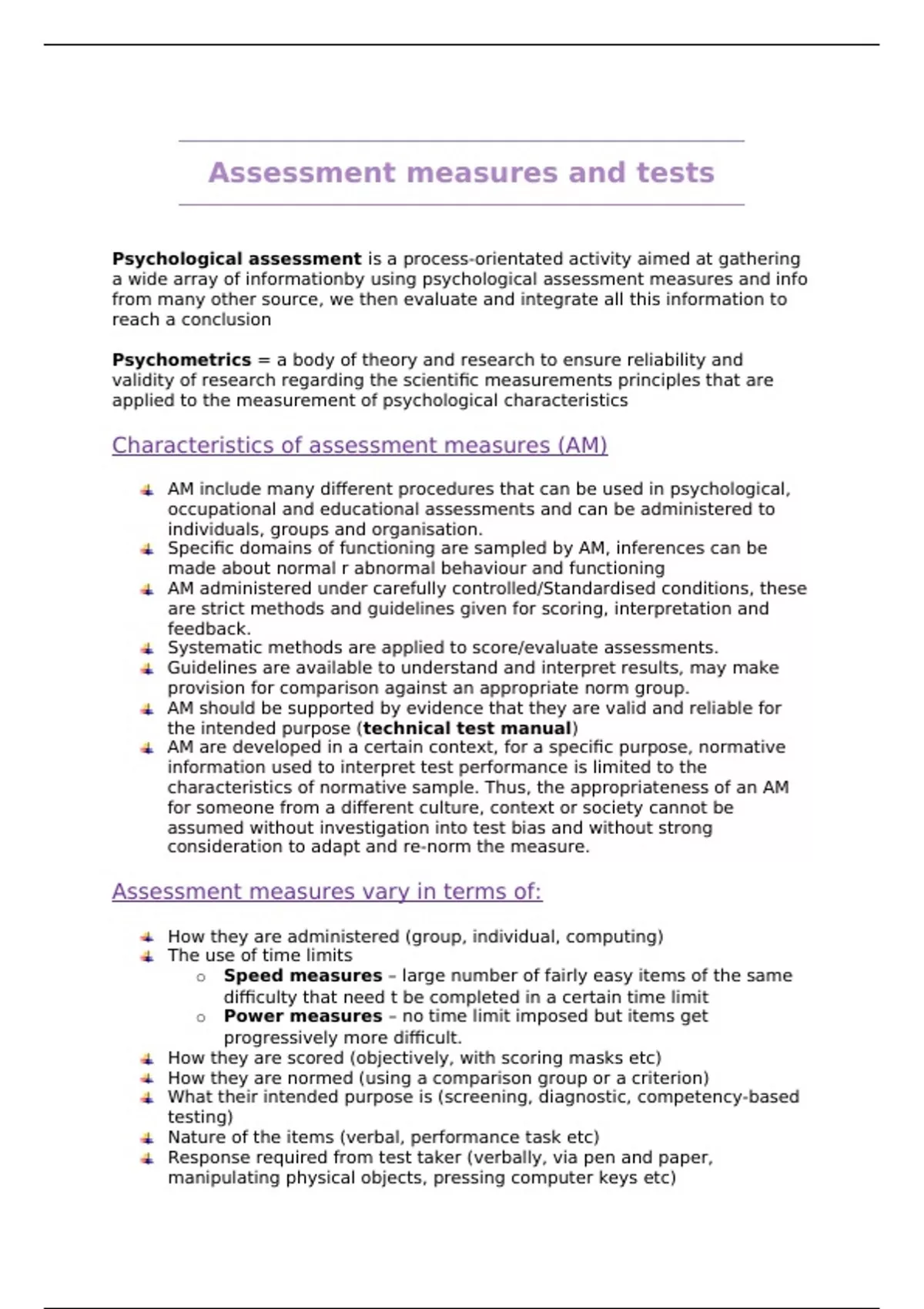 o Speed measures – large number of fairly easy items of the same