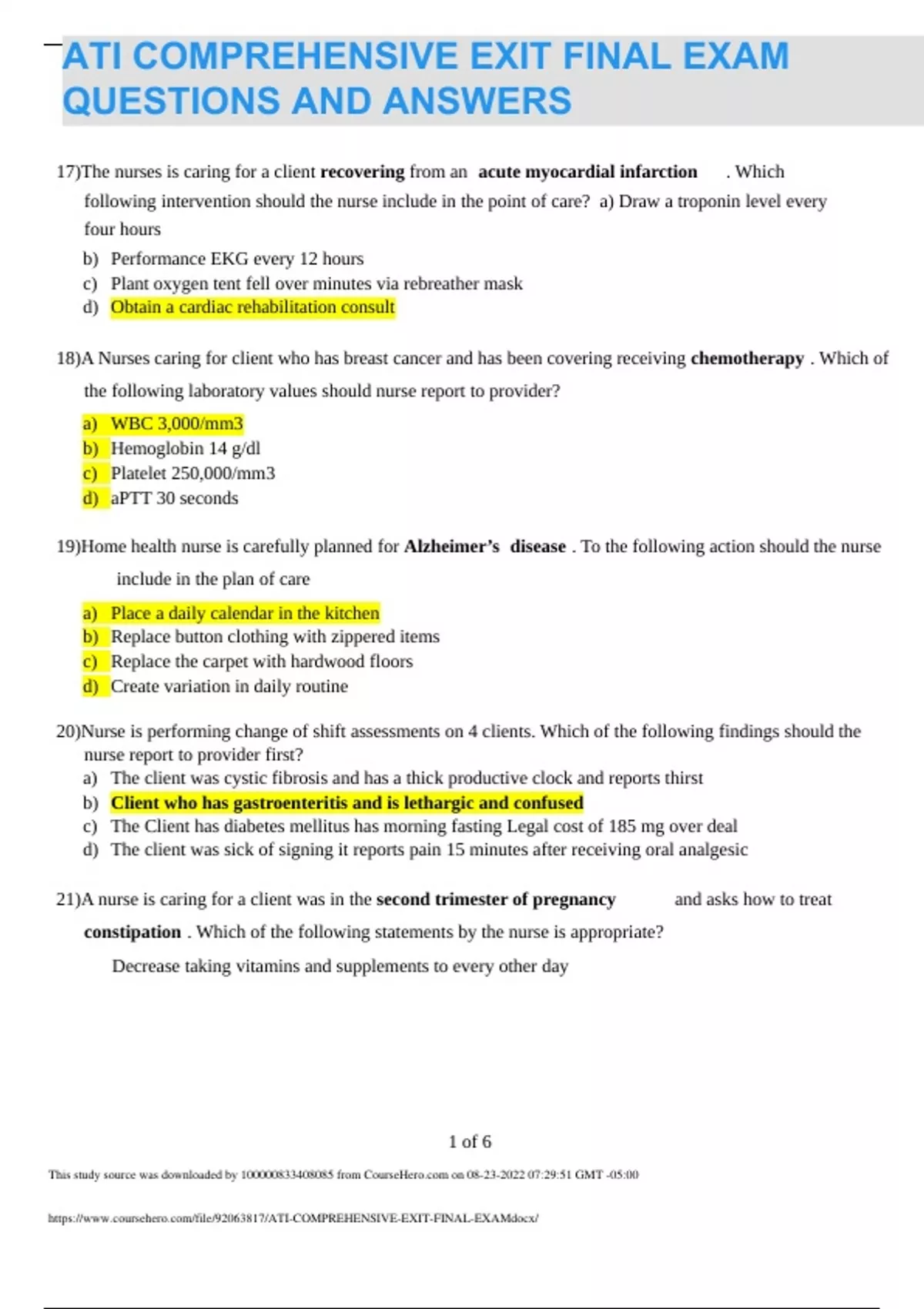 ATI PN COMPREHENSIVE EXIT EXAM Questions & Answers/ Guaranteed A+