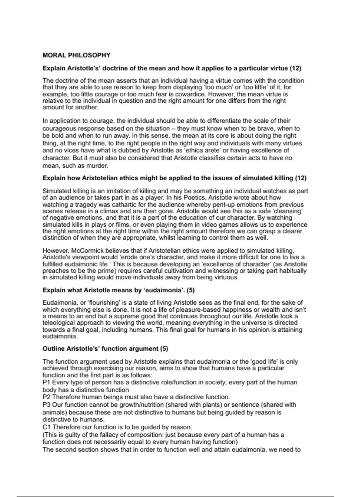 Outline Aristotle’s’ function argument (5)