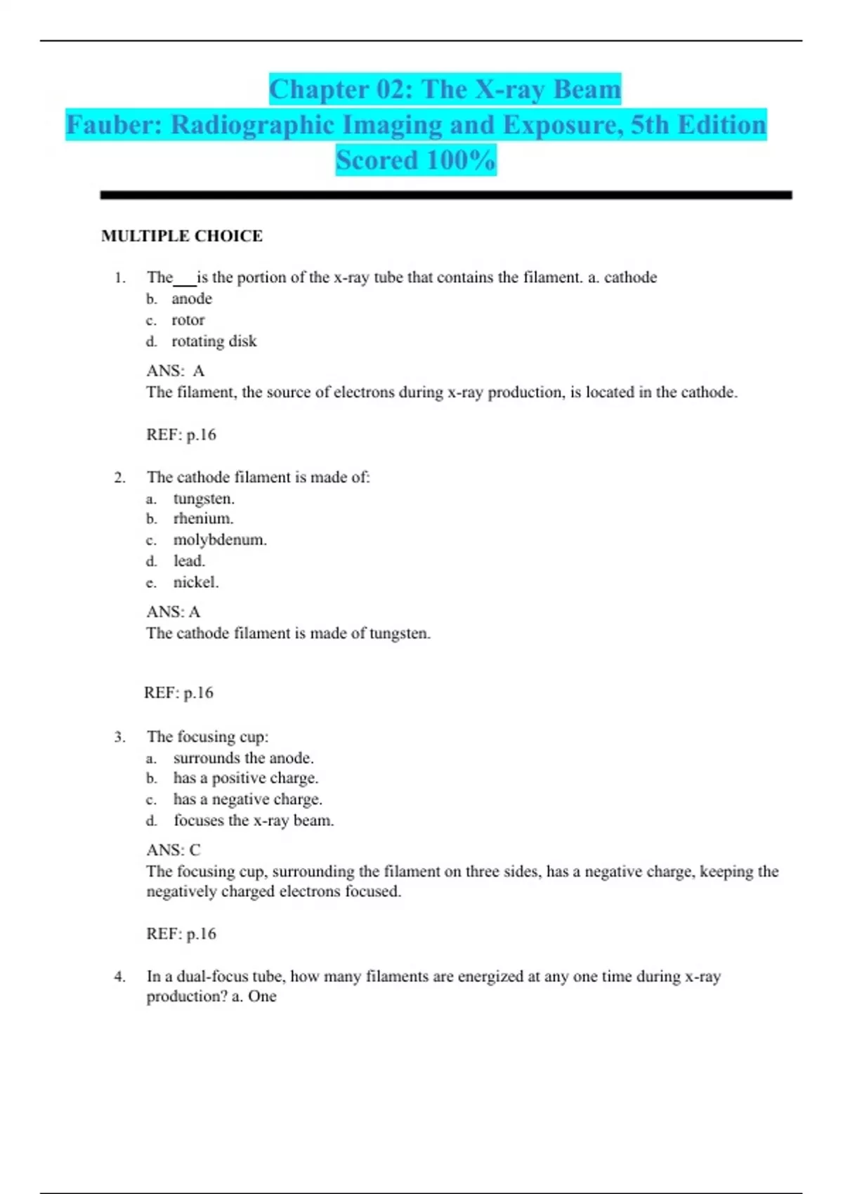 RADIOGRAPHIC_IMAGING_AND_EXPOSURE_5TH_EDITION_BY_FAUBER 100% Complete Guide