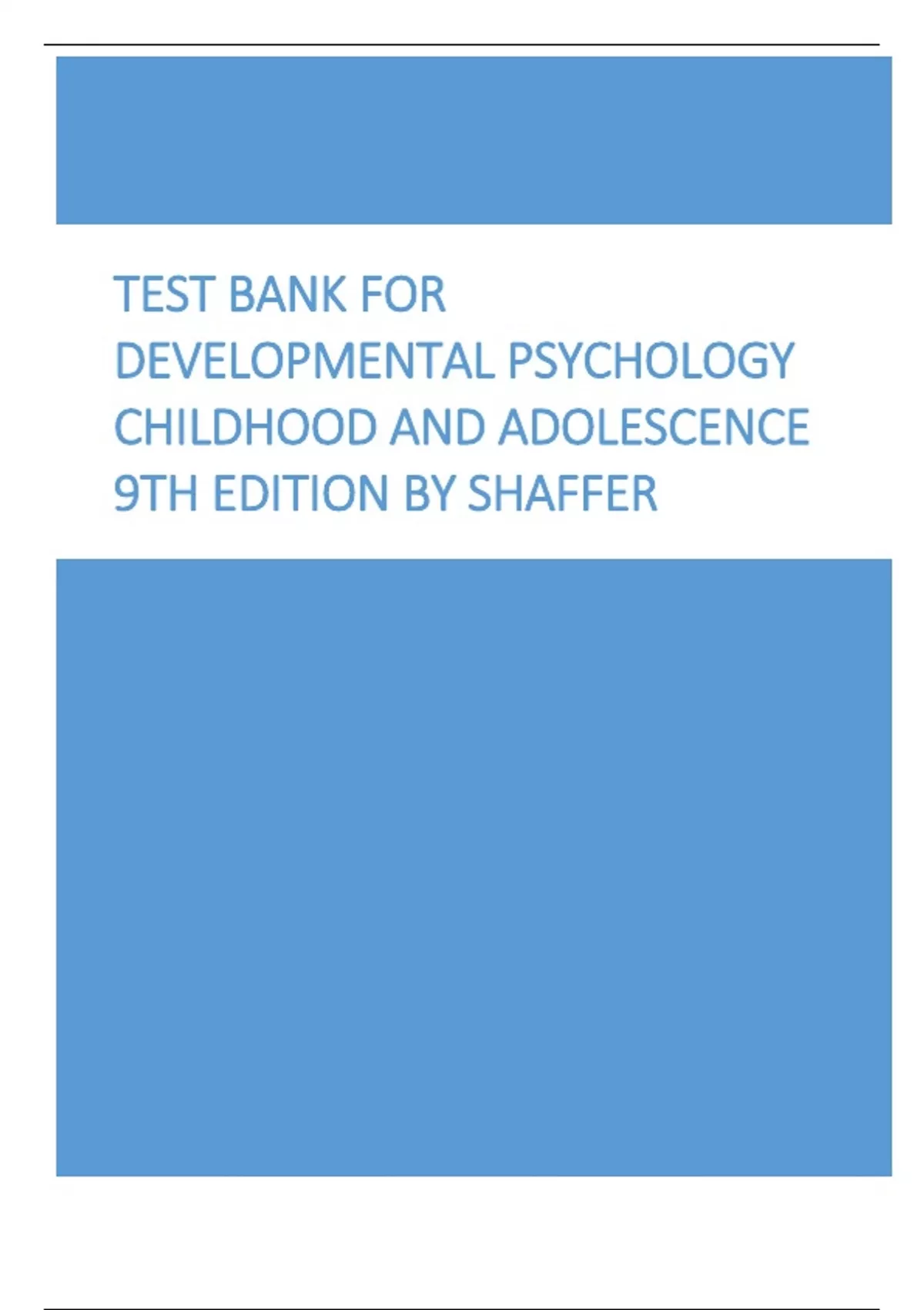 Test Bank for Developmental Psychology Childhood And Adolescence 9th Edition By Shaffer