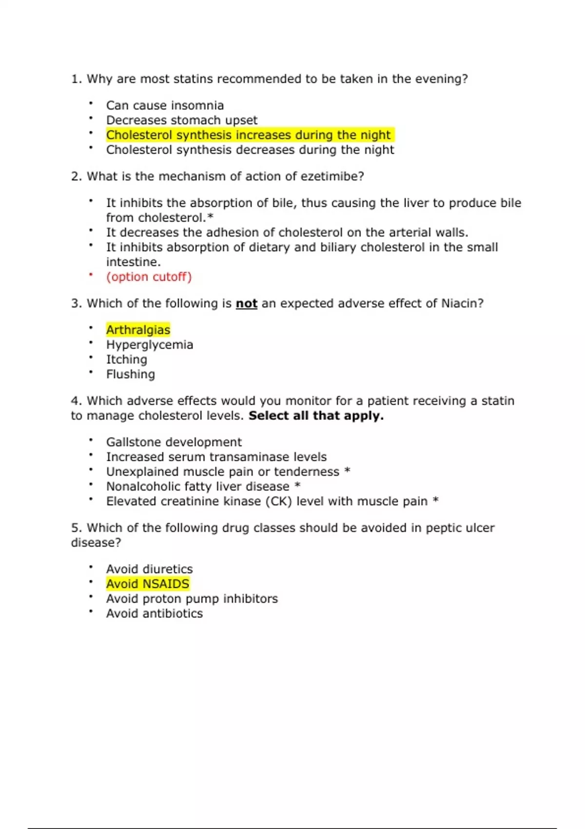 4. Which adverse effects would you monitor for a patient receiving a statin