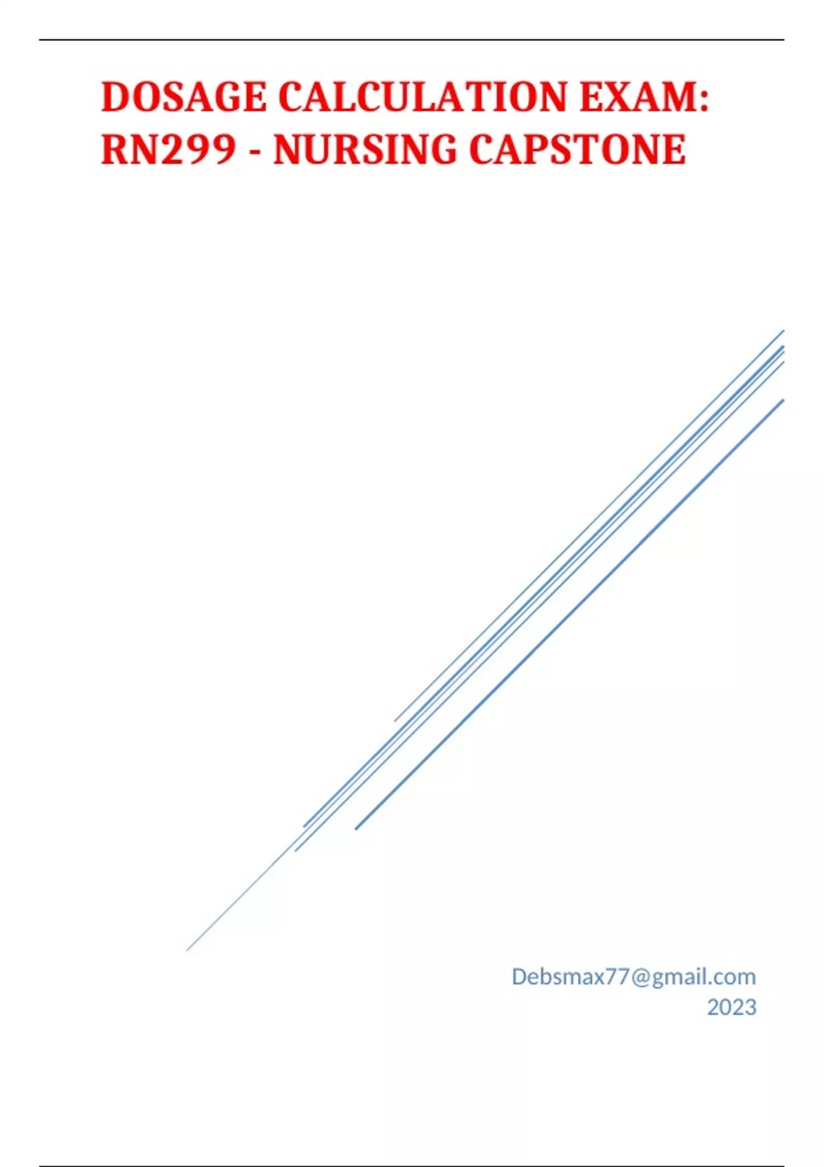 DOSAGE CALCULATION EXAM: RN299 - NURSING CAPSTONE