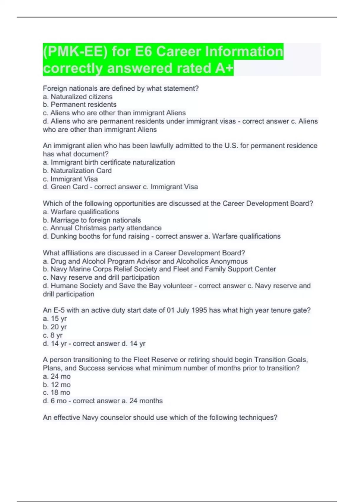 (PMK-EE) for E6 Career Information Questions With 100% Correct Answers