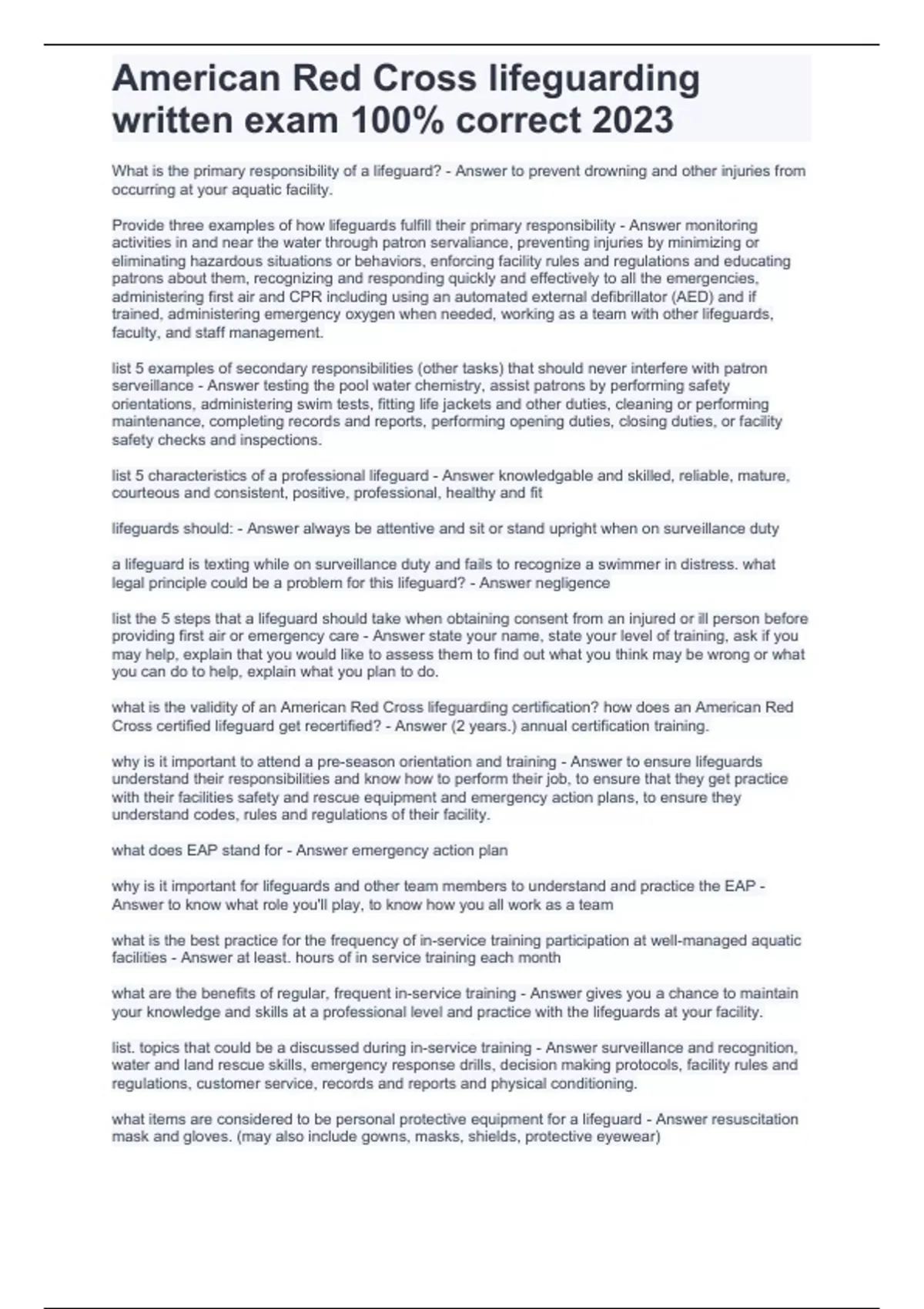 American Red Cross Lifeguarding Final Written Exam 2022/2023 With all Complete Solution