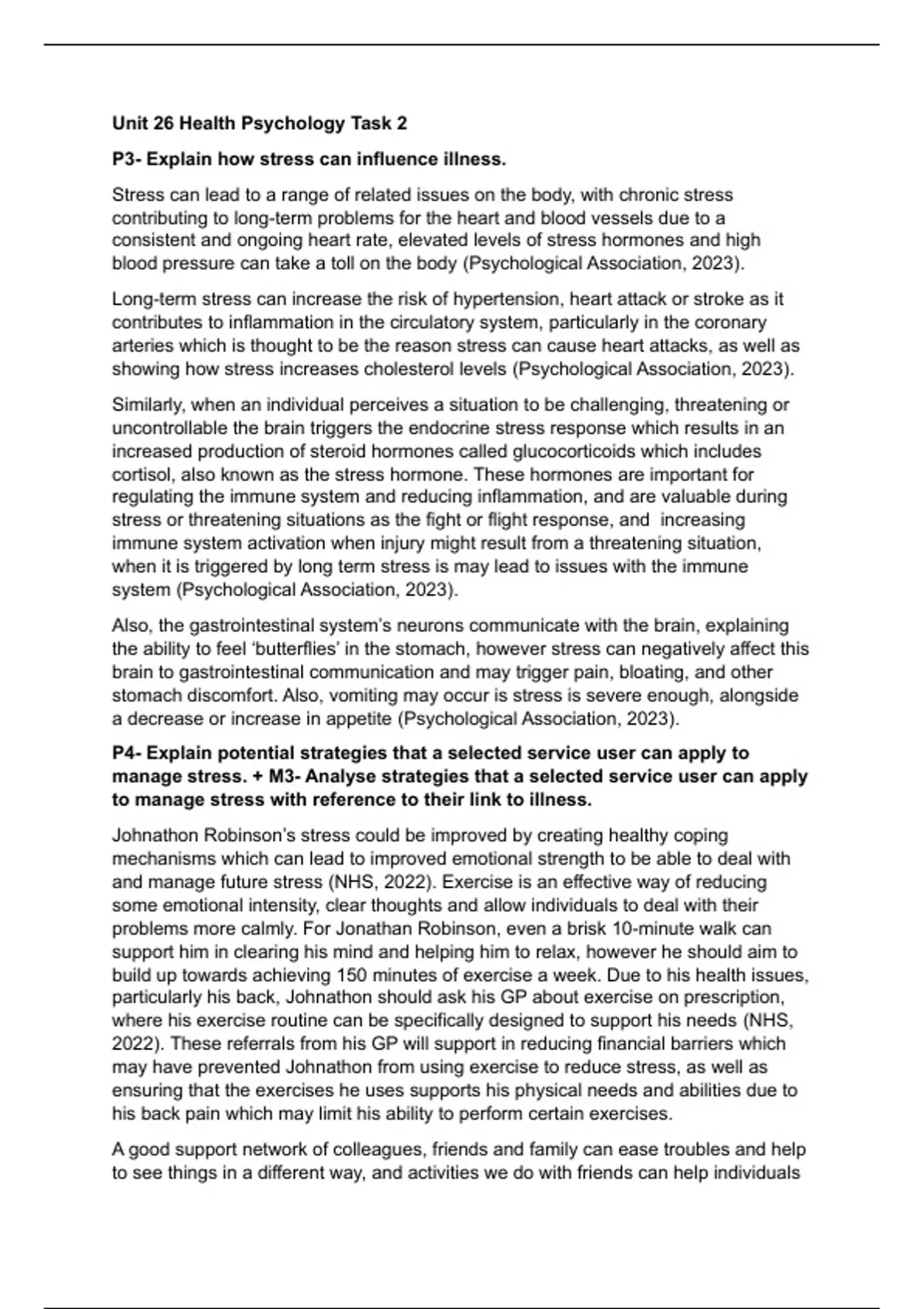 manage stress. + M3- Analyse strategies that a selected service user can apply