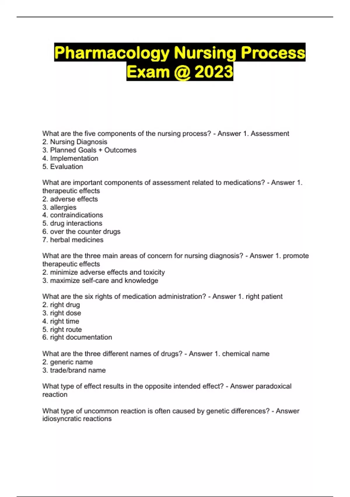 Nursing Process and Pharmacology Bundled Exams With Complete Solution Graded A+