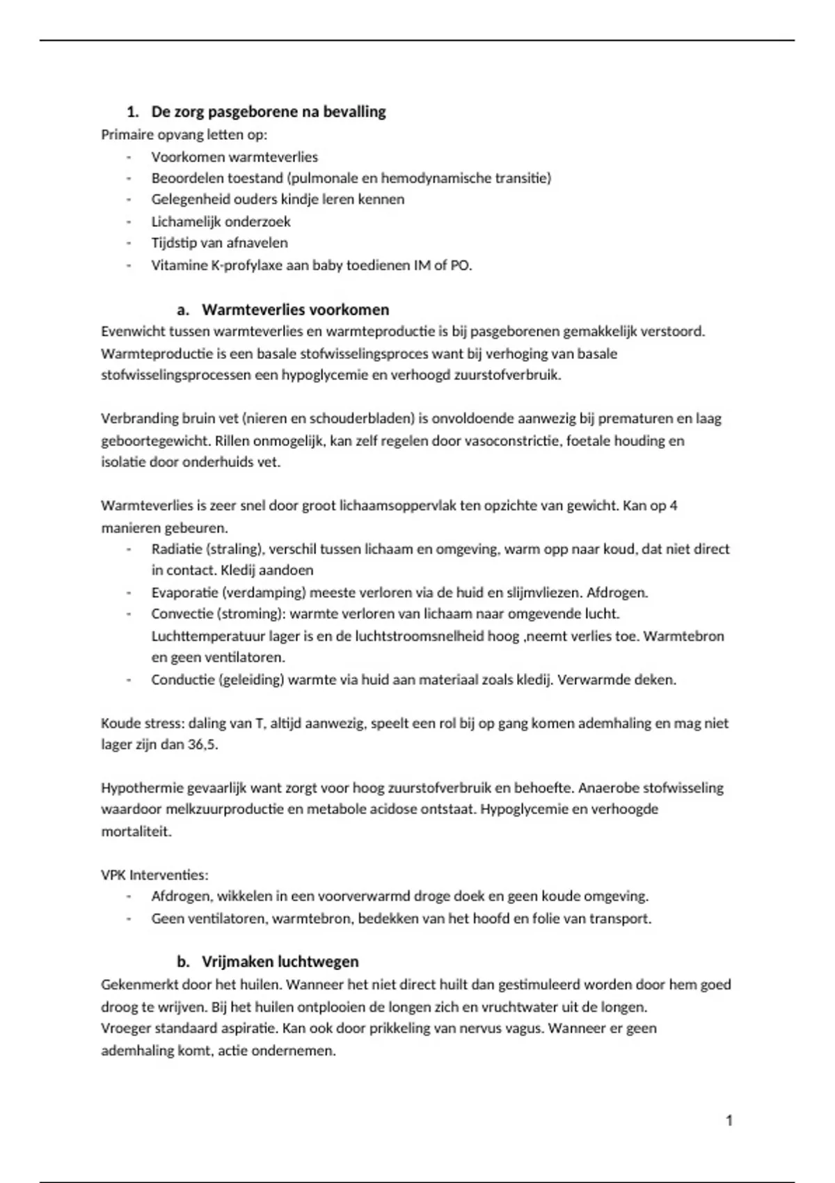 Samenvatting van 61 pagina's voor het vak Specifieke Zorgverlening: Moeder, Pasgeborene En Kind aan de VIVES