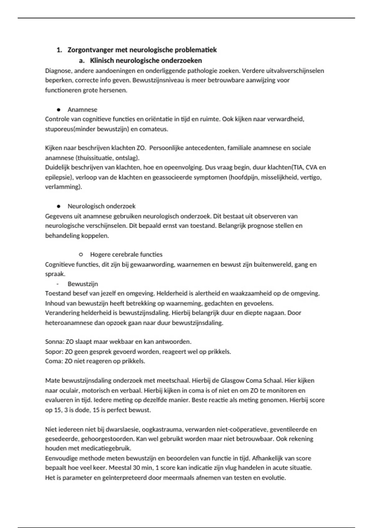 neurologische verschijnselen. Dit bepaald ernst van toestand. Belangrijk prognose stellen en
