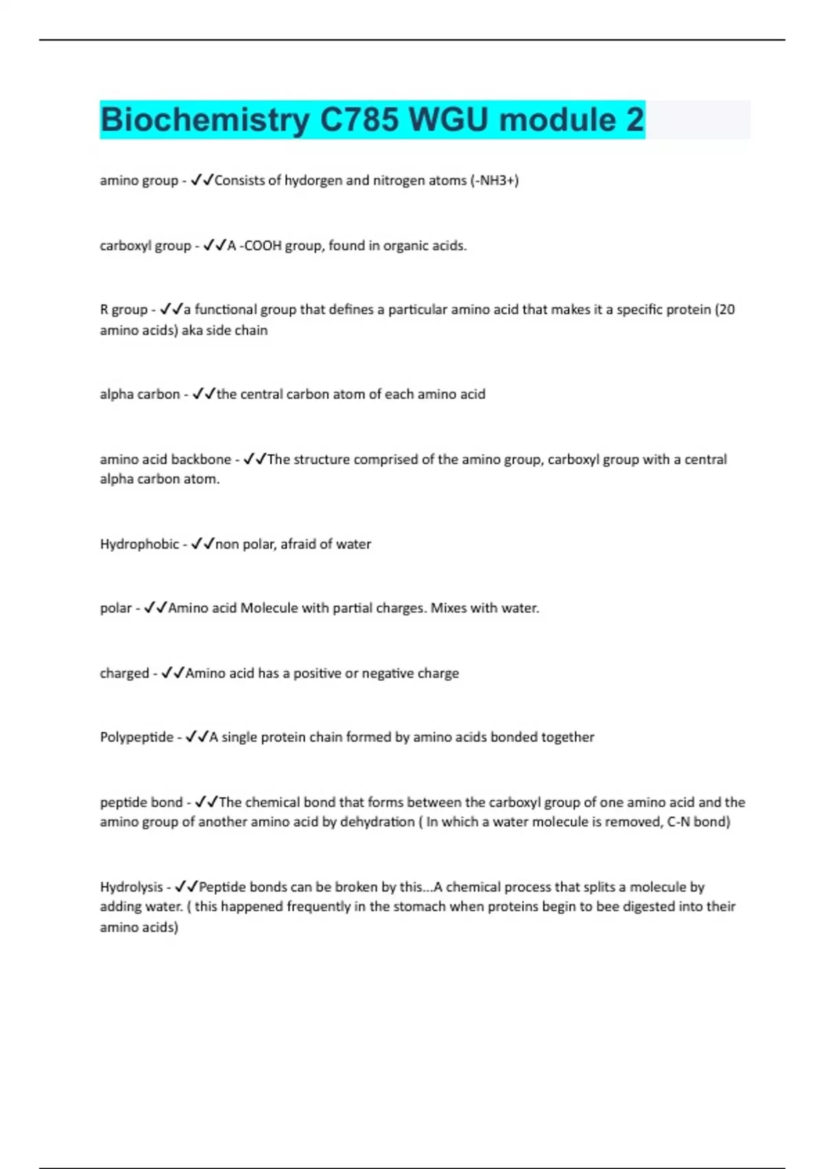 - Biochemistry C785 WGU module 2
