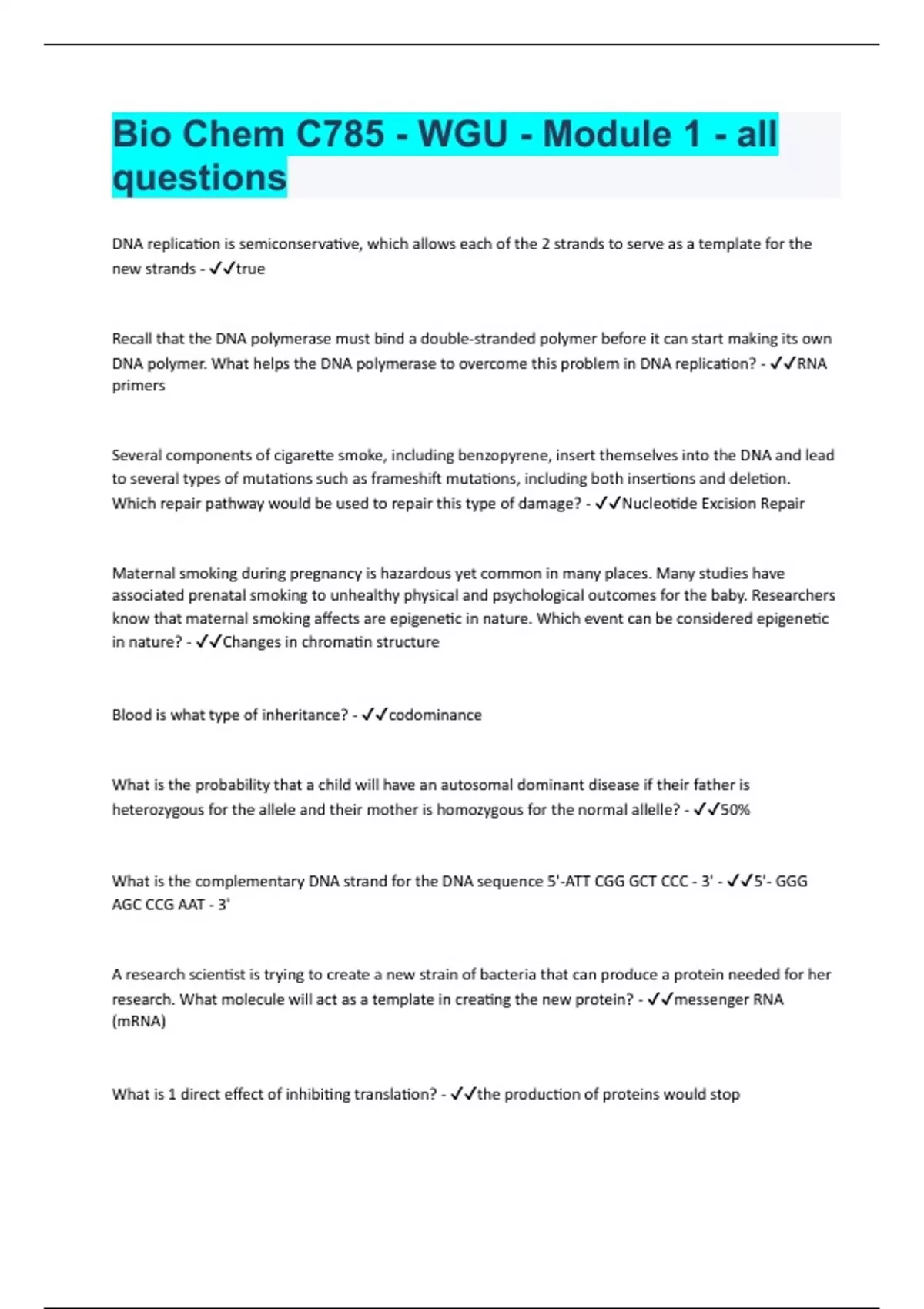 BioChem C785 - WGU - Module 1 - all questions| Questions With 100 % Correct Answers | Verified