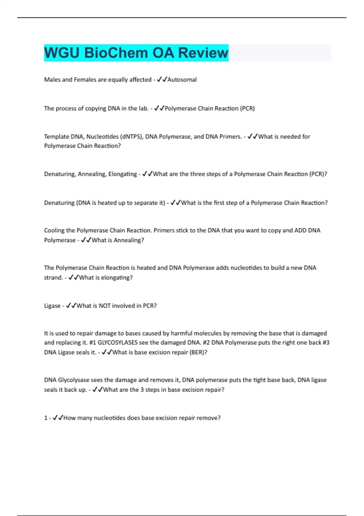 WGU Bio Chem OA Review | 141 Questions With 100 % Correct Answers | latest