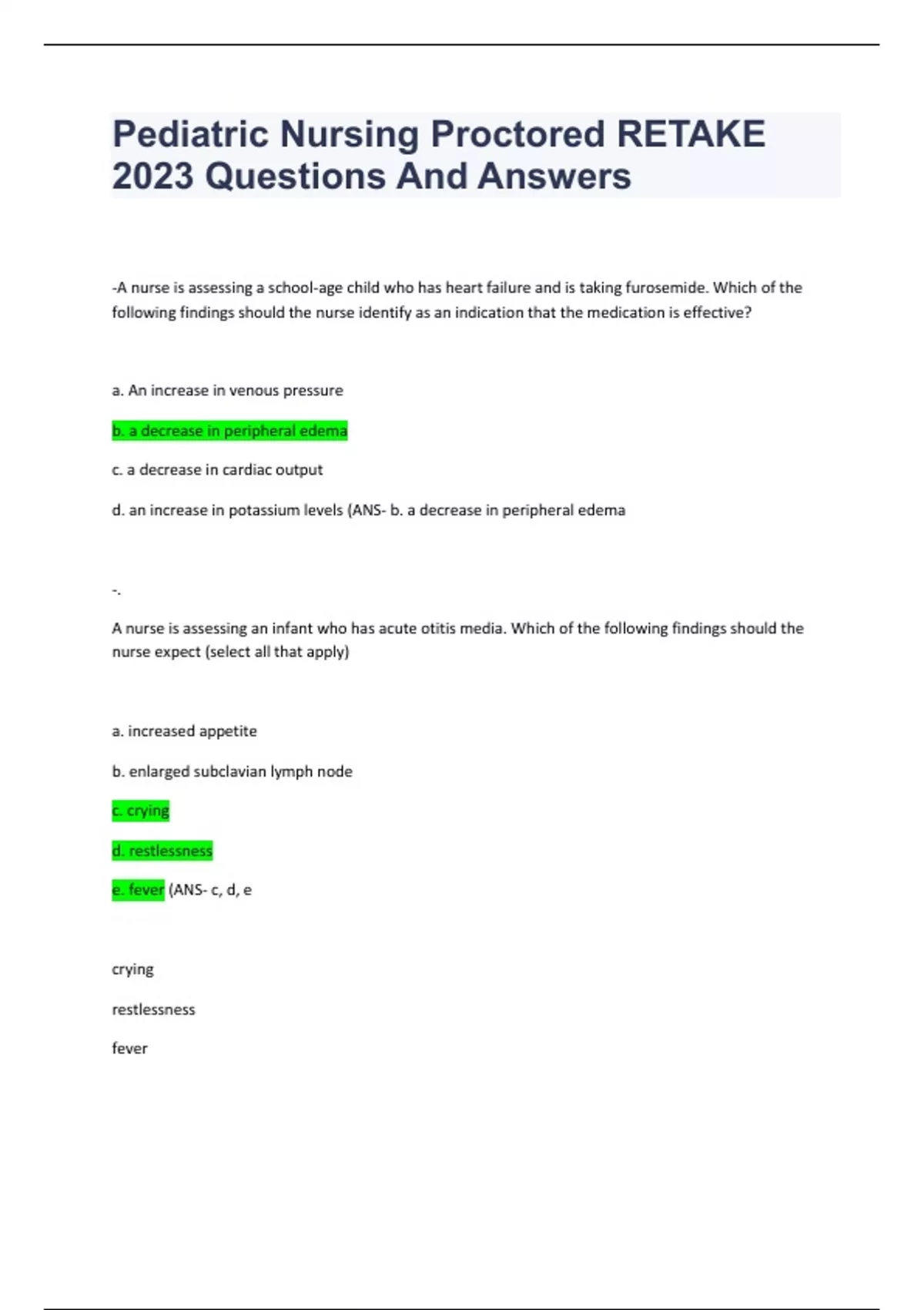 Pediatric Nursing Proctored RETAKE 2023 Questions And Answers Pediatric Nursing Proctored RETAKE 2023 Questions And Answers