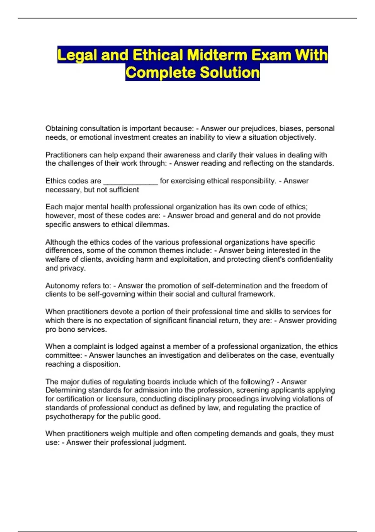 Legal and Ethical Midterm Exam With Complete Solution...