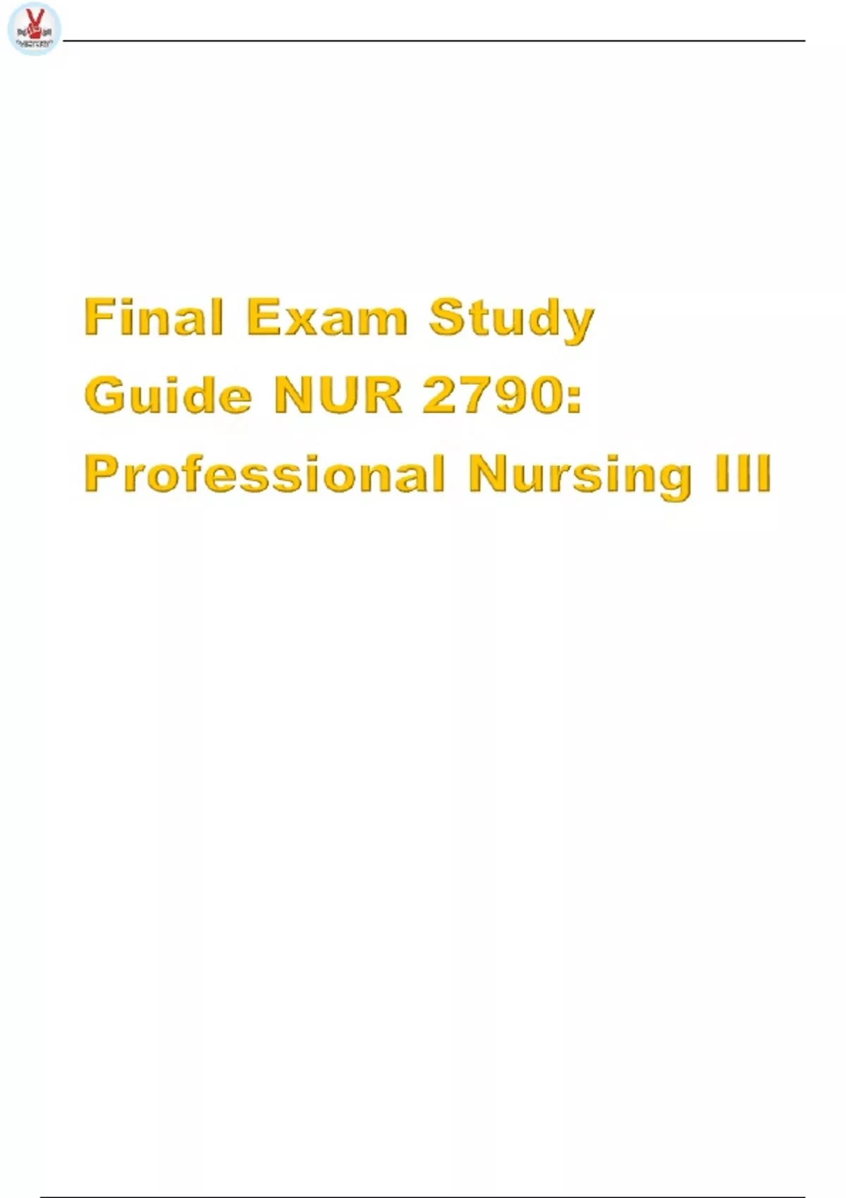 Summary Final Exam Study Guide NUR 2790: Professional Nursing III