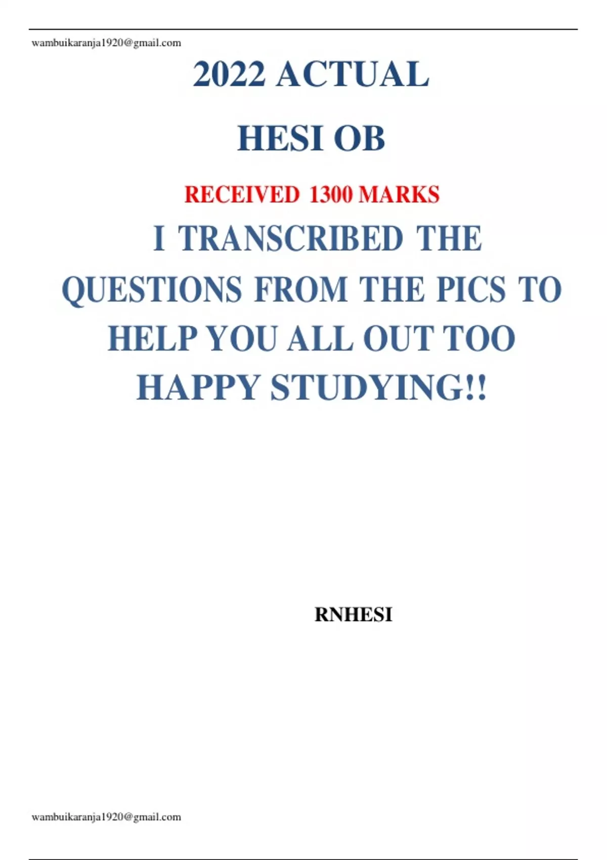 2022 ACTUAL HESI OB RECEIVED 1300 MARKS I TRANSCRIBED THE QUESTIONS FROM THE PICS TO HELP YOU ALL OUT TOO HAPPY STUDYING!!