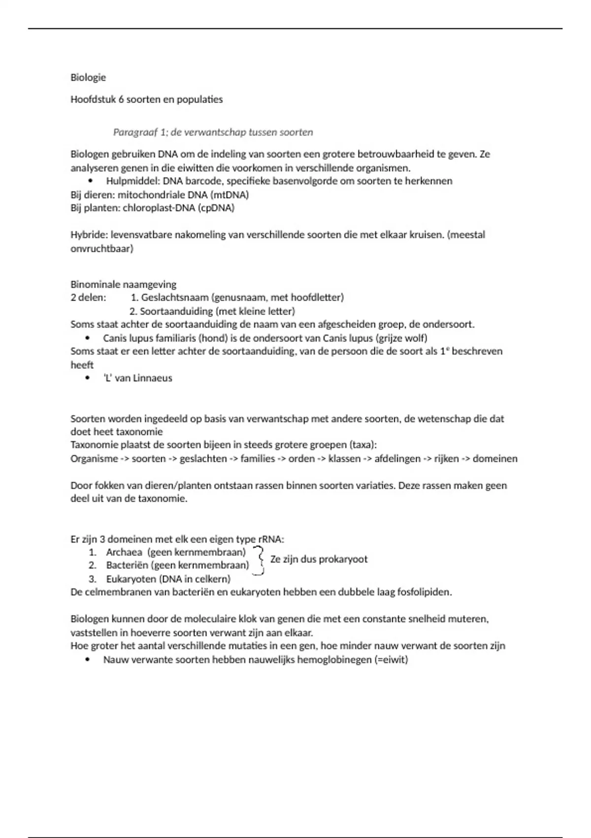 Paragraaf 1; de verwantschap tussen soorten