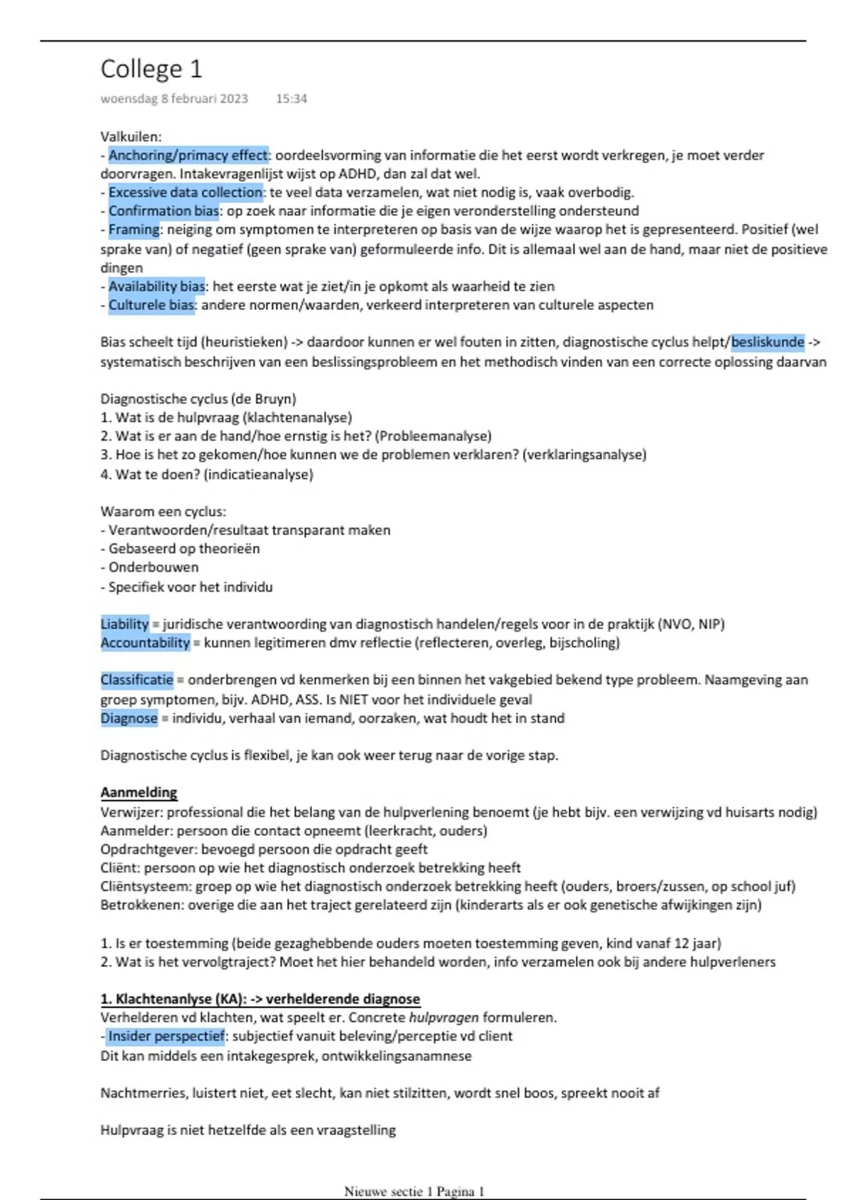 Bias scheelt tijd (heuristieken) -> daardoor kunnen er wel fouten in zitten, diagnostische cyclus helpt/besliskunde ->