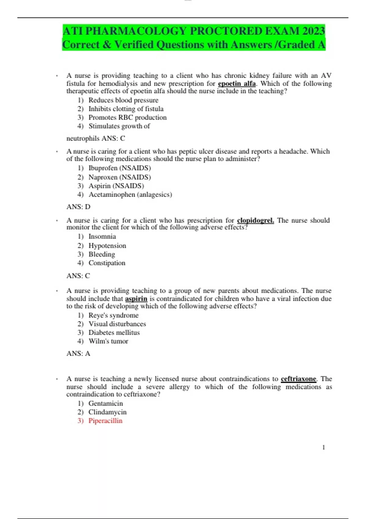 ATI PHARMACOLOGY PROCTORED EXAM 2023