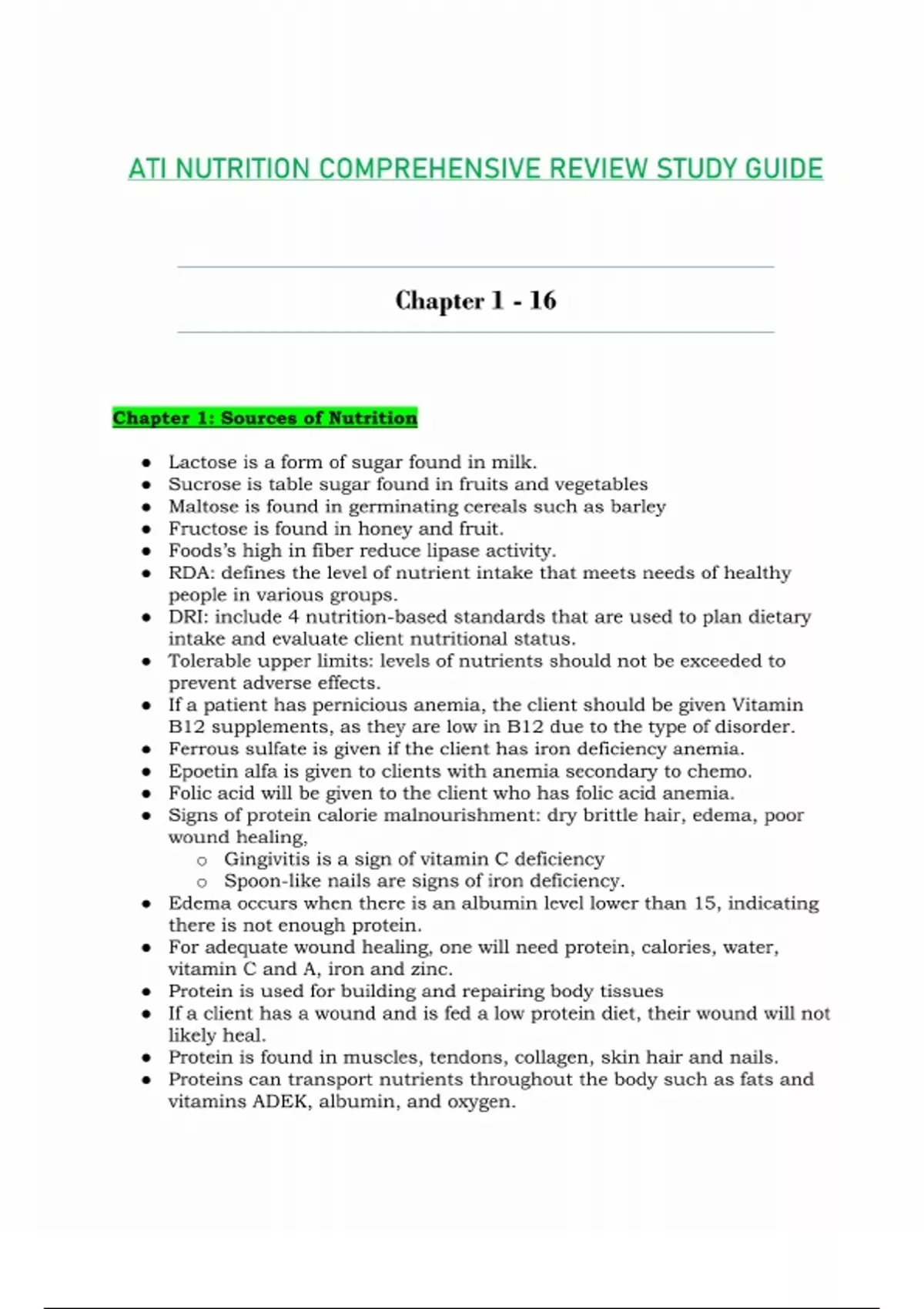 ATI NUTRITION COMPREHENSIVE REVIEW STUDY GUIDE 2023. Well elaborated and verified for best grades
