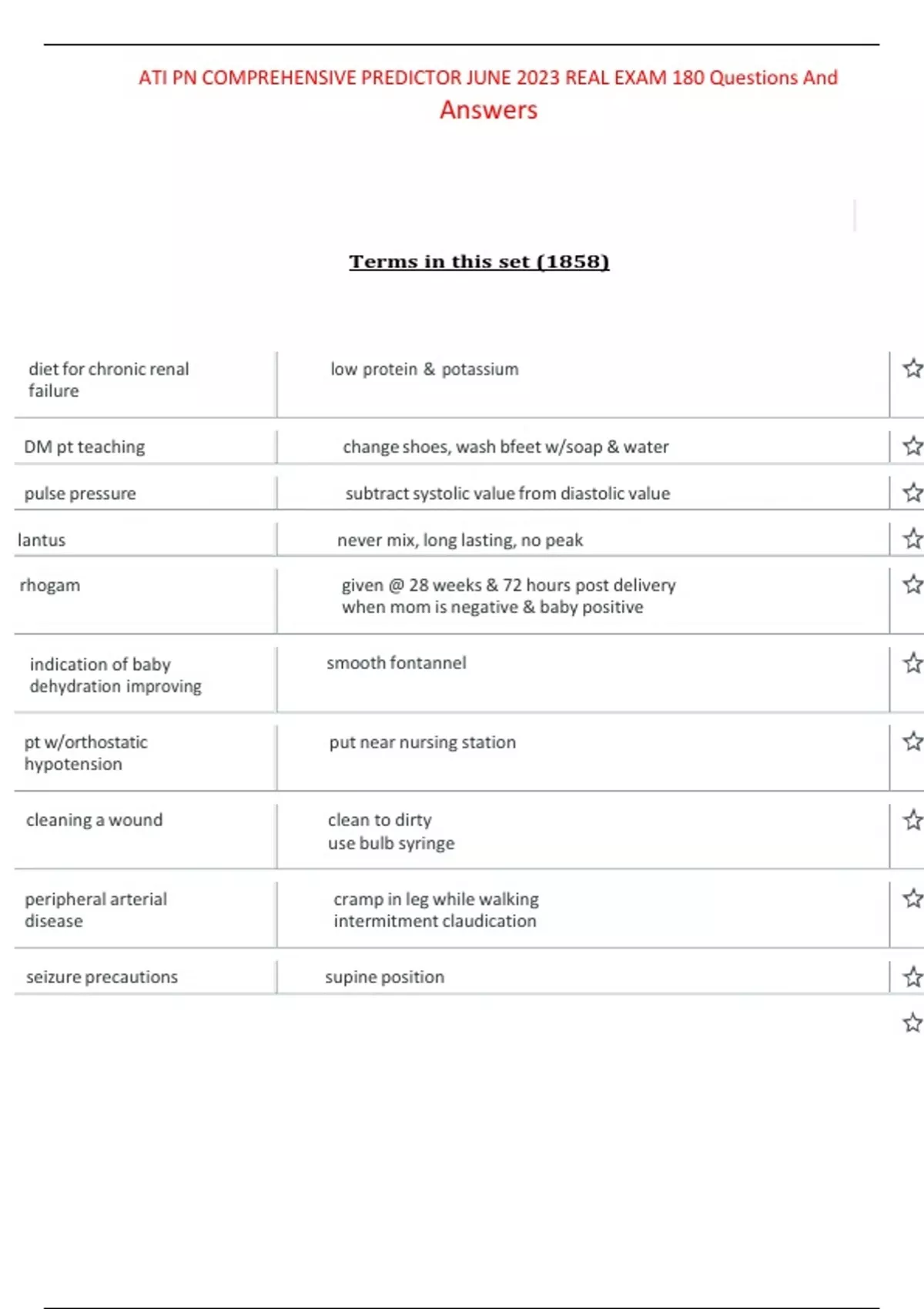 ,ATI PN COMPREHENSIVE PREDICTOR JUNE 2023 REAL EXAM 180 Questions And