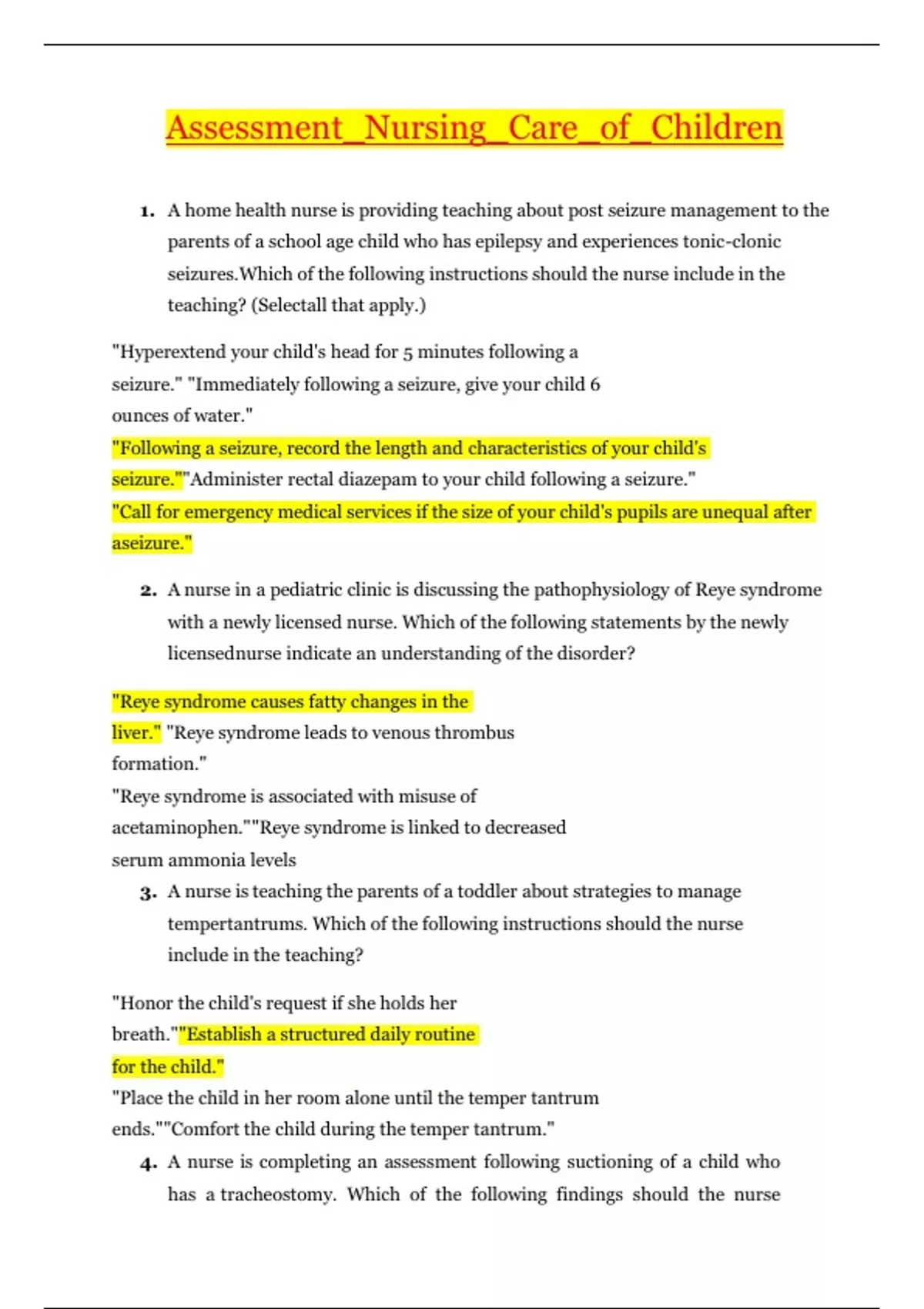 NURS 406 Assessment Nursing Care of Children