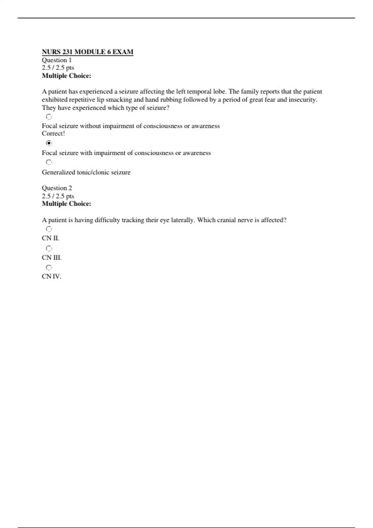 NURS 231 MODULE 6 EXAM.