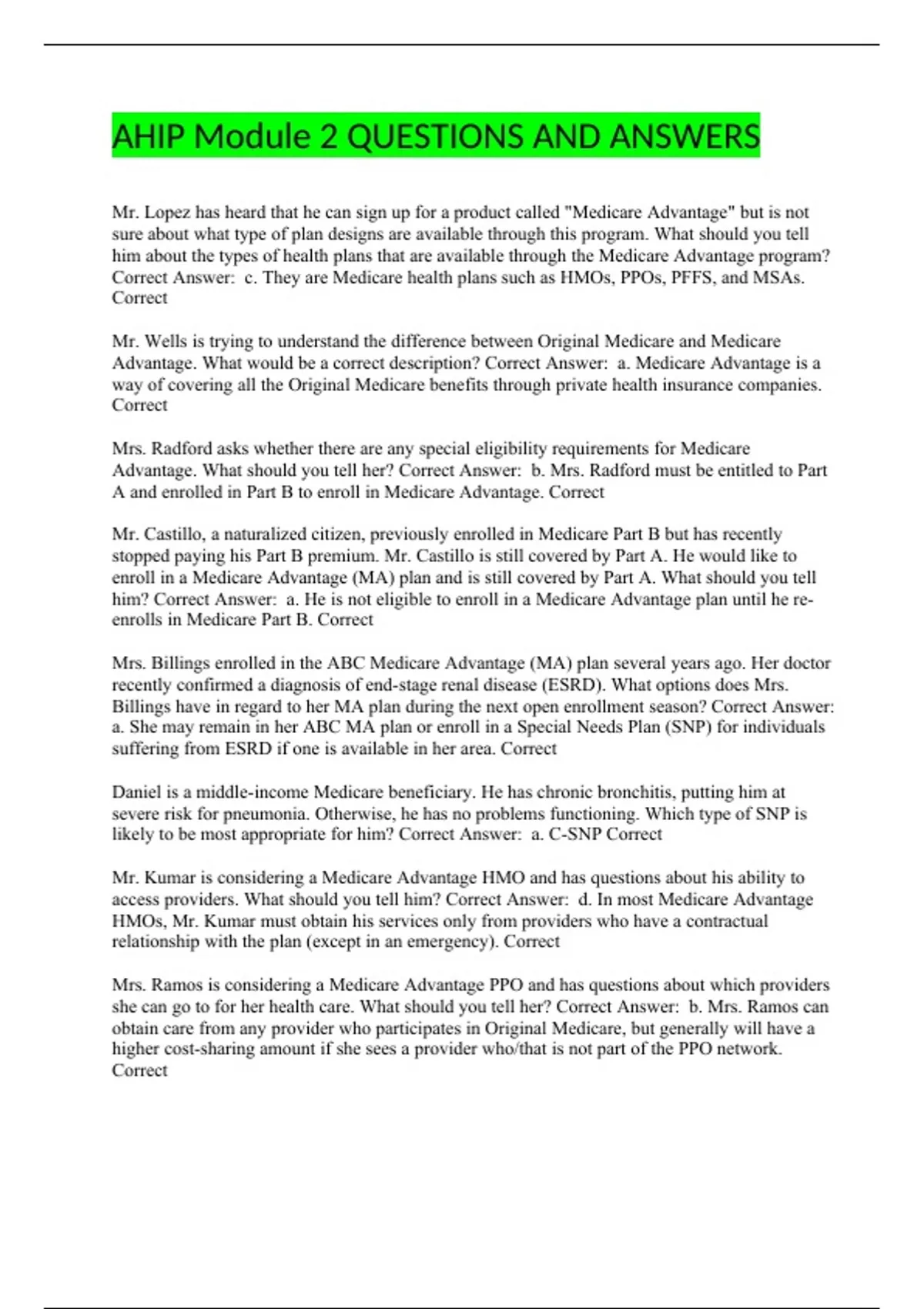 AHIP Module 2 QUESTIONS AND ANSWERS