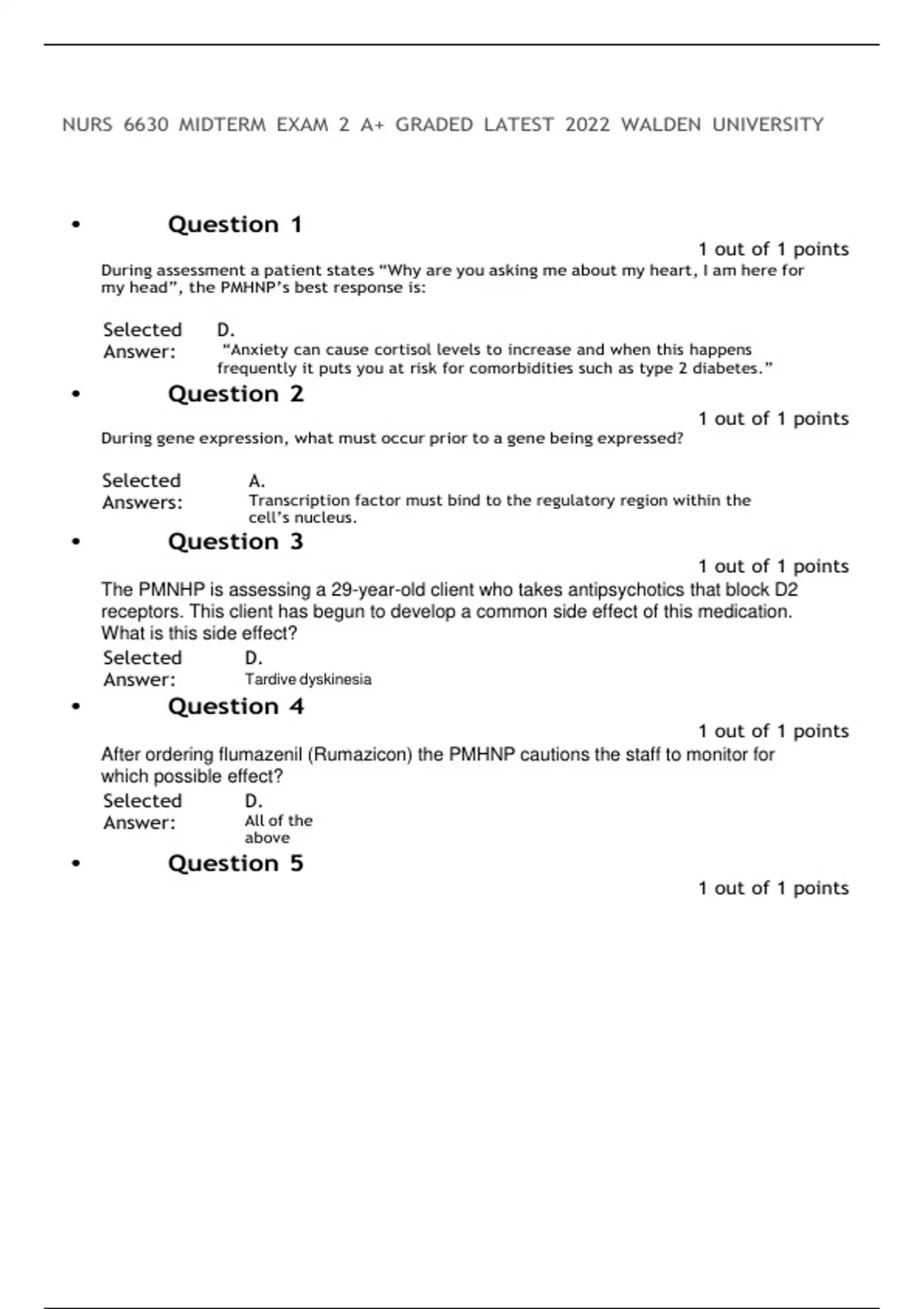 NURS 6630 MIDTERM EXAM 2 A+ GRADED LATEST