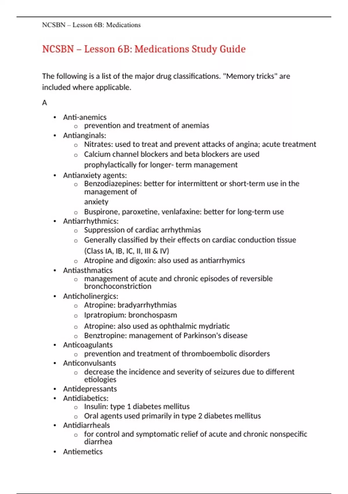 NCSBN – Lesson 6B: Medications Study Guide ,100% CORRECT